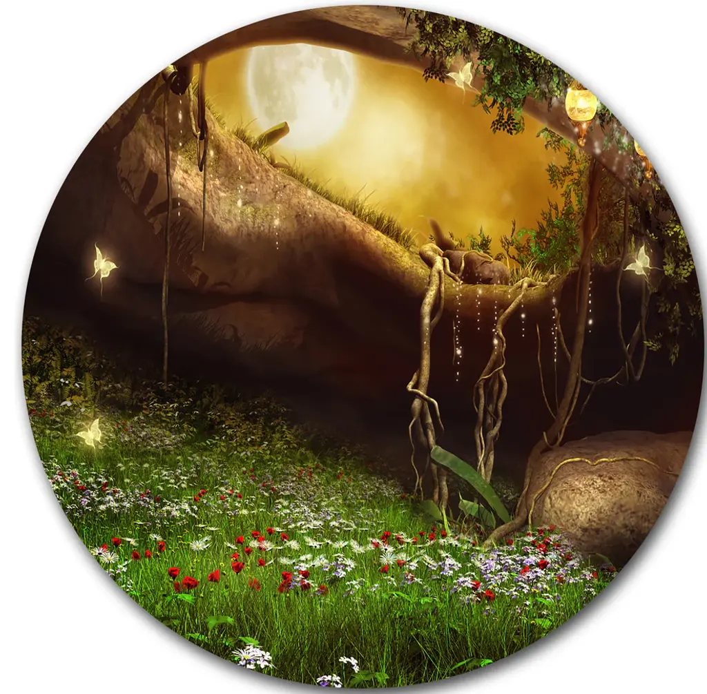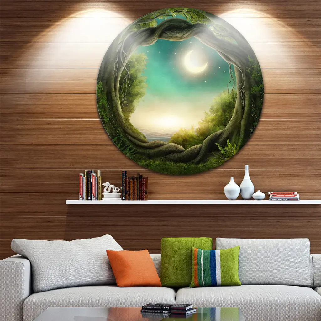 Bring Contemporary Abstraction to your home with this large Circle Metal wall art. This Enchanted Dark Forest Metal Artwork makes it the focal point of any room or office. - White Gloss Coating ensures colors are extra vibrant with light reflection.- Aluminum grade Sheet Metal with 1 inch mounting frame on the back giving the illusion that the artwork is floating on the wall..- Mounting Brackets are included along with instructions.- High Quality Digital images are created directly into a glossy aluminum panel producing a stunning and captivating print into the glossy finish of the metal.- Water, Fire and Scratch resistant HD Aluminum panels.- Looks better than any photo paper and guaranteed to last at least 20 years- Easy to clean with a microfiber cloth. Colors are far superior to regular Canvas Art. - Easy to Hang