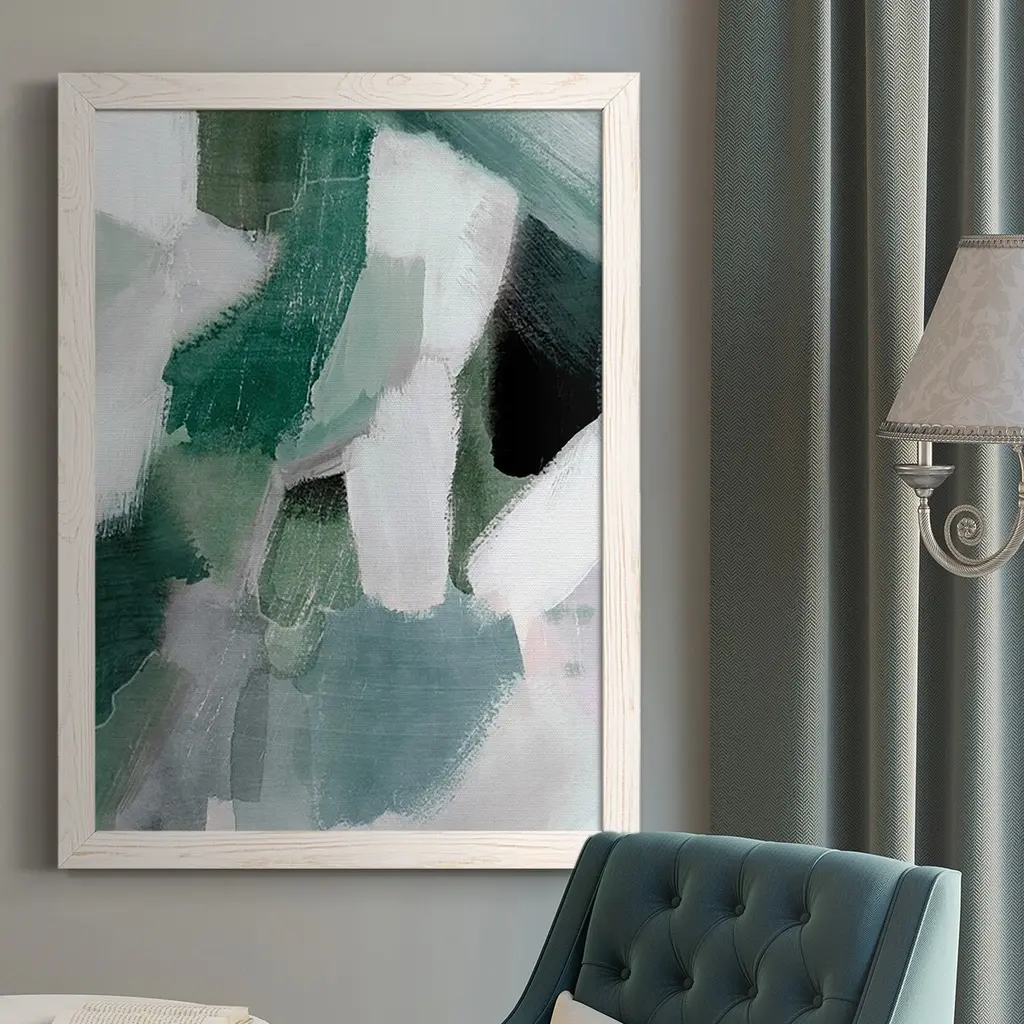 Introduce a touch of modern elegance to your space with "Enchanted Emerald II" canvas art by Tom Reeves . The minimalist design and soothing green hues create a calming atmosphere, making it a versatile addition to any room. Perfect for both contemporary and classic interiors, this artwork adds a subtle yet sophisticated accent to your decor. Available in black frame, dark walnut frame, oak frame, or as a wrapped canvas Our Gallery Wrap Canvas Prints are proudly assembled with high quality materials in California, USA. Each piece is printed on a thick, archival grade canvas using Giclee technology. It is then hand-stretched by our experienced artisans over solid wood bars, which will not warp over time. The final product is a piece personally crafted for you to confidently display on your wall. Care and Assembly: Ensure that the location of your piece has little to no exposure to heat, sunlight, and moisture. Wipe clean, only if needed. Each piece includes a sawtooth hanger to hang on your wall vertically.