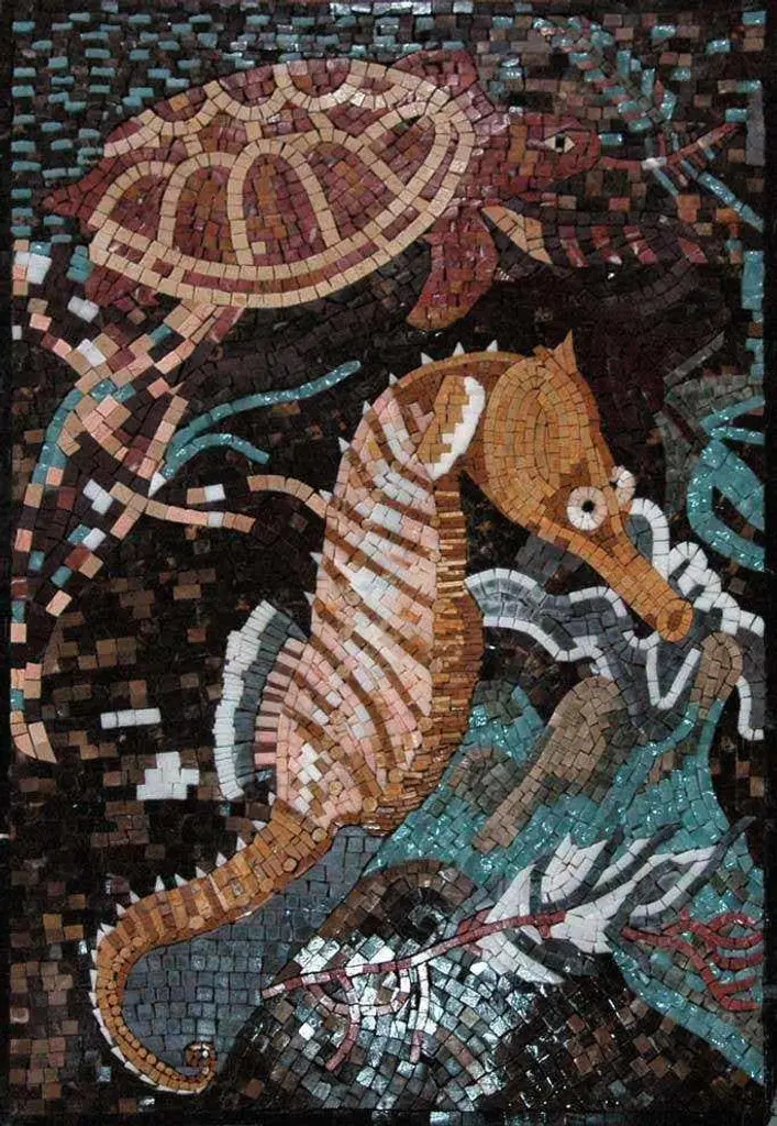 Immerse yourself in the captivating beauty of the ocean with our Enchanting Seahorse Mosaic Tile Art. This exquisite piece is not just a decoration; it's a statement of artistry and elegance that will transform any space into a serene underwater paradise. Handcrafted by skilled artisans, each tile is a masterpiece in itself, featuring intricate patterns and mesmerizing colors that evoke the tranquil essence of marine life.Designed to capture the enchanting allure of the majestic seahorse, this mosaic art piece is perfect for adding a touch of sophistication to your home. Whether you’re looking to enhance your bathroom, kitchen, or living area, our tile art serves as a stunning focal point that draws the eye and sparks conversation. The vibrant hues and delicate details create a visual feast that reflects the beauty of nature, allowing you to incorporate a piece of the ocean into your everyday life.Crafted with meticulous attention to detail, each tile in our Enchanting Seahorse Mosaic Tile Art is made from high-quality materials, ensuring durability and longevity. The unique designs and rich textures not only elevate your decor but also provide a sense of tranquility and warmth to your environment. This mosaic art is not just for coastal-themed homes; it complements various interior styles, from modern to eclectic, making it a versatile addition to your decor collection.Imagine stepping into a serene sanctuary whenever you enter your space—this is what our Enchanting Seahorse Mosaic Tile Art promises. It’s more than decoration; it’s an invitation to experience the beauty and wonder of the sea. Dive into a world of elegance and let this enchanting tile art inspire your decor, inviting a feeling of peace and serenity to your home. Indulge in the artistry of the ocean and elevate your surroundings with this captivating piece today!