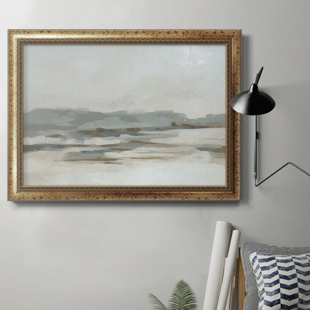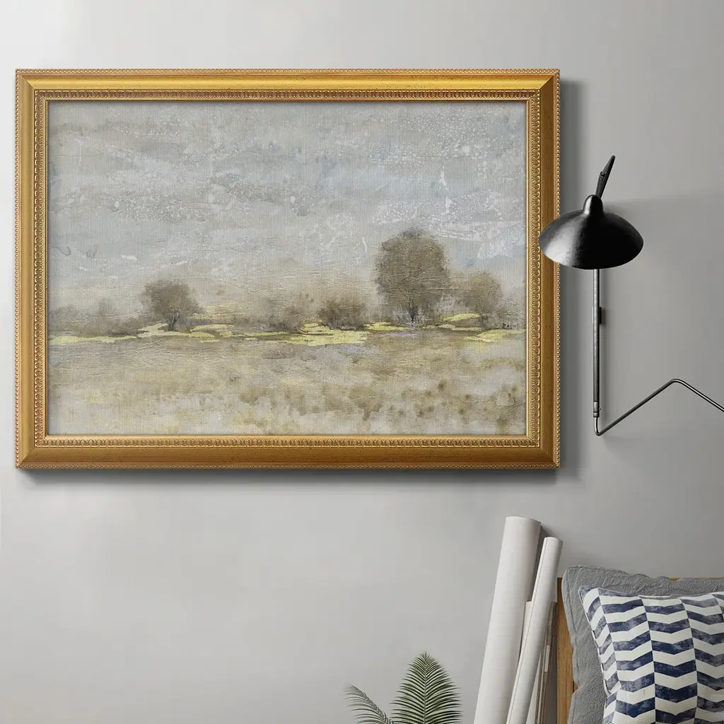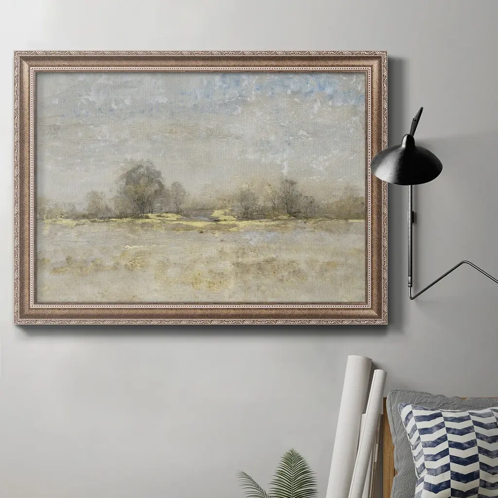 Seen first at One Kings Lane: A faithful reproduction of a vintage work down to its crackled finish, this quiet landscape is printed on matte paper with deckled edges. Floated over a white mat and displayed in a wood frame, this piece arrives ready to hang.