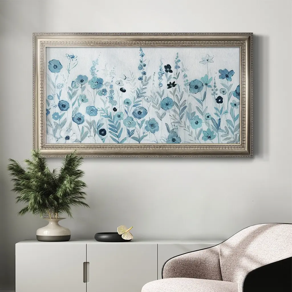 Endless Field Of Blue Premium Framed Canvas- Ready To Hang - 18x34 - Pewter