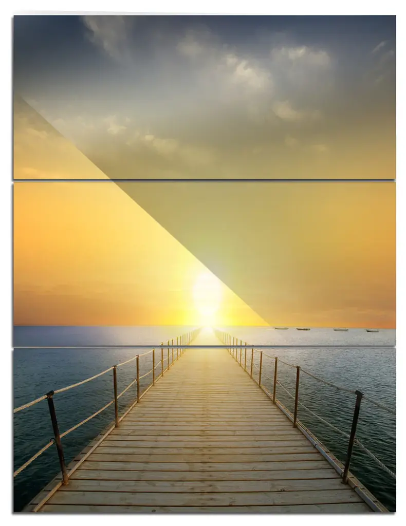 "Endless Pier Into Blue Sea" Photo Metal Wall Art, 3 Panels, 36"x28"