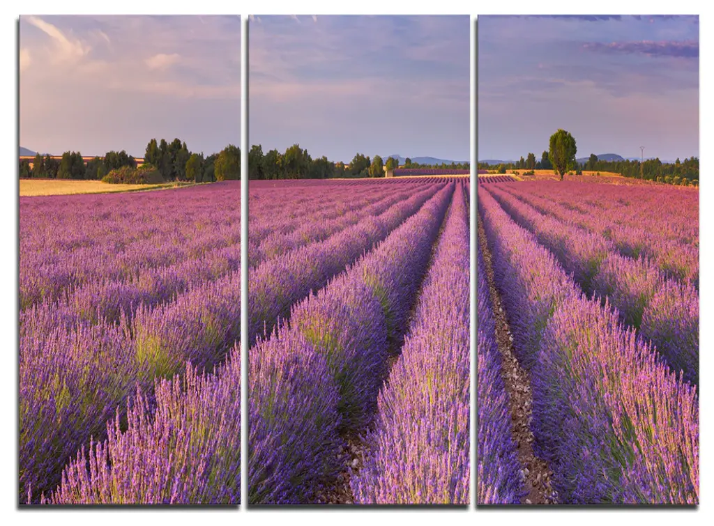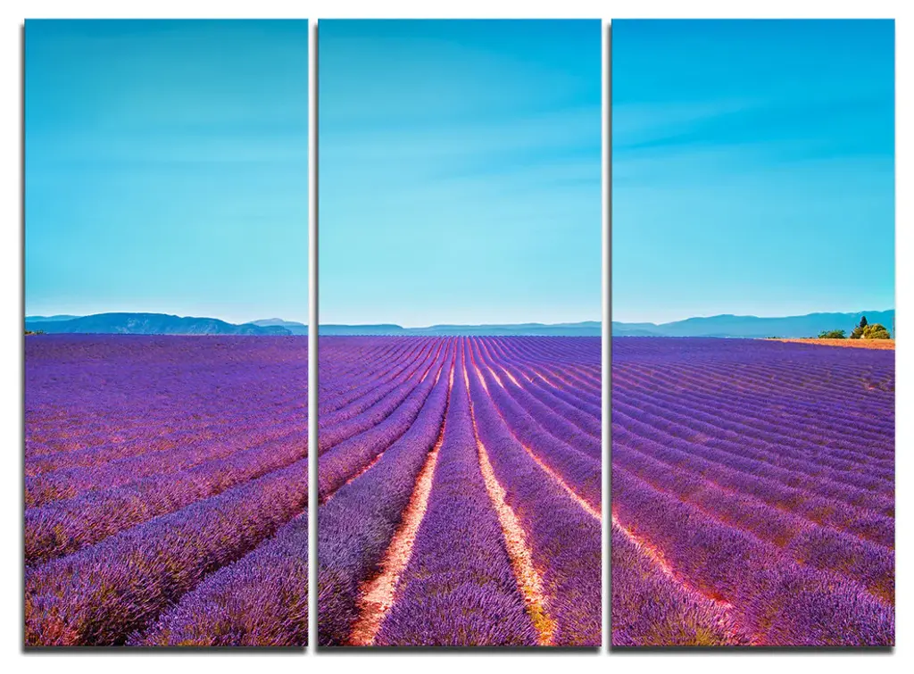 The Endless Rows of Lavender Flowers canvas art print is sure to make an impression on anyone who sees it. This artwork is gallery wrapped around a 1-inch solid wood frame and arrives carefully packaged and entirely ready to hang on the wall. Design Art only uses the highest resolution and pigments to ensure a crisp colorful print that is never faded or pixelated. This artwork is sure to be a conversation starter in any home or office.