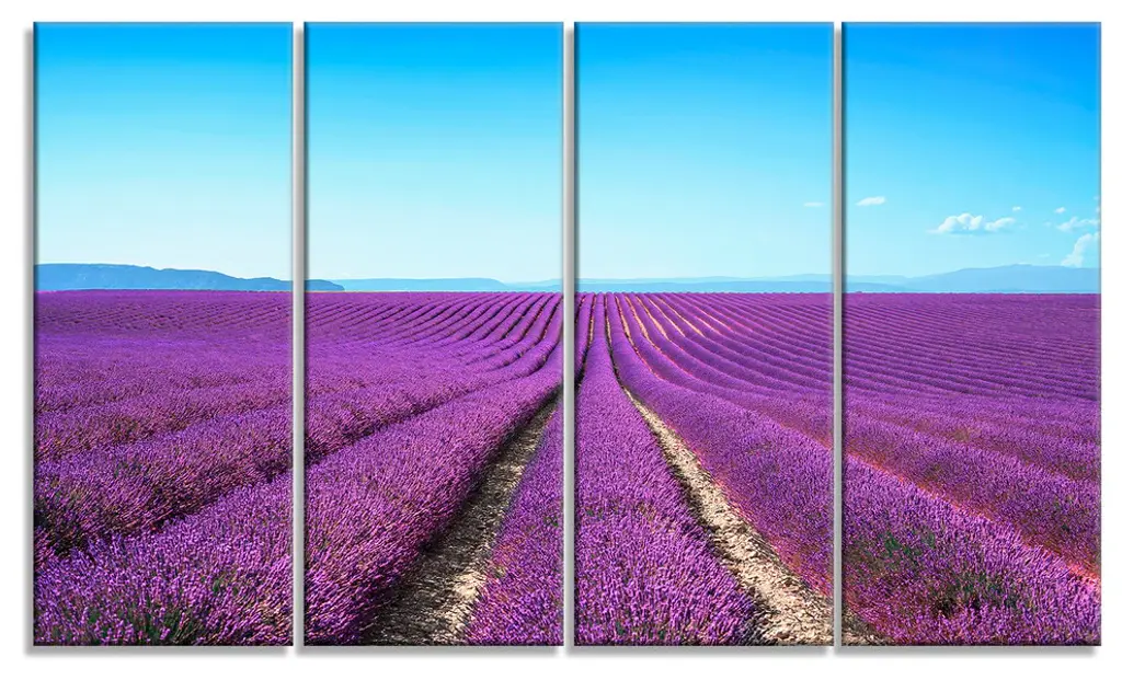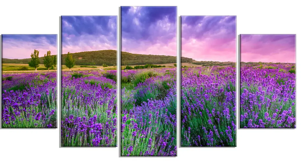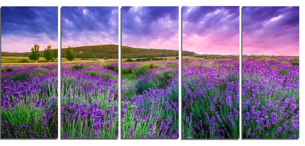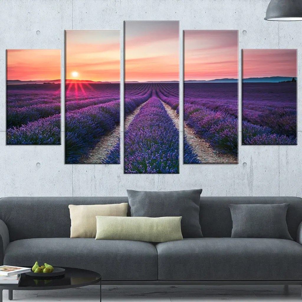 "Endless Rows Of Lavender Flowers" Modern Landscape Wall Art, 5 Panels, 60"x32"
