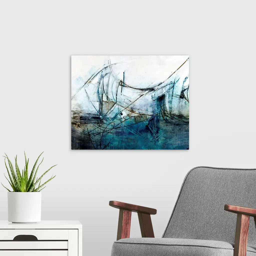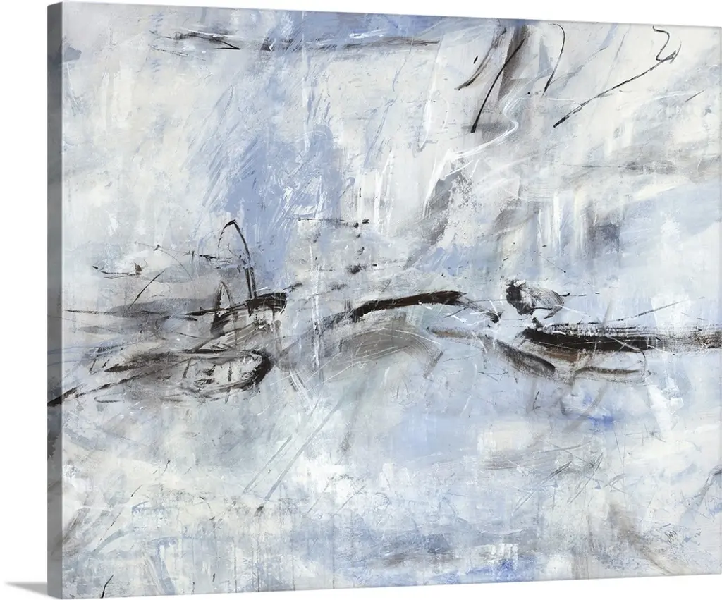 Contemporary abstract painting using tones of blue and white.