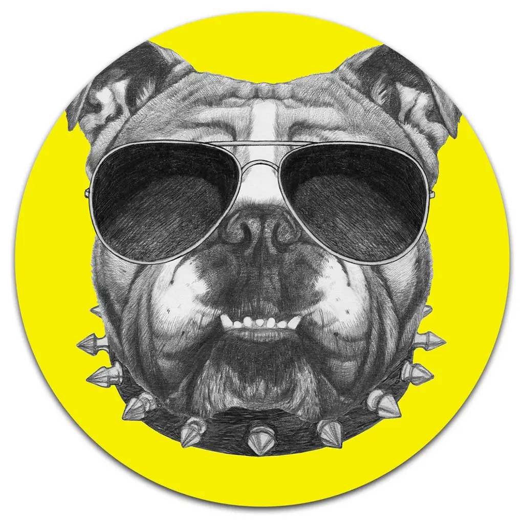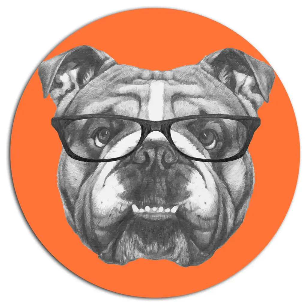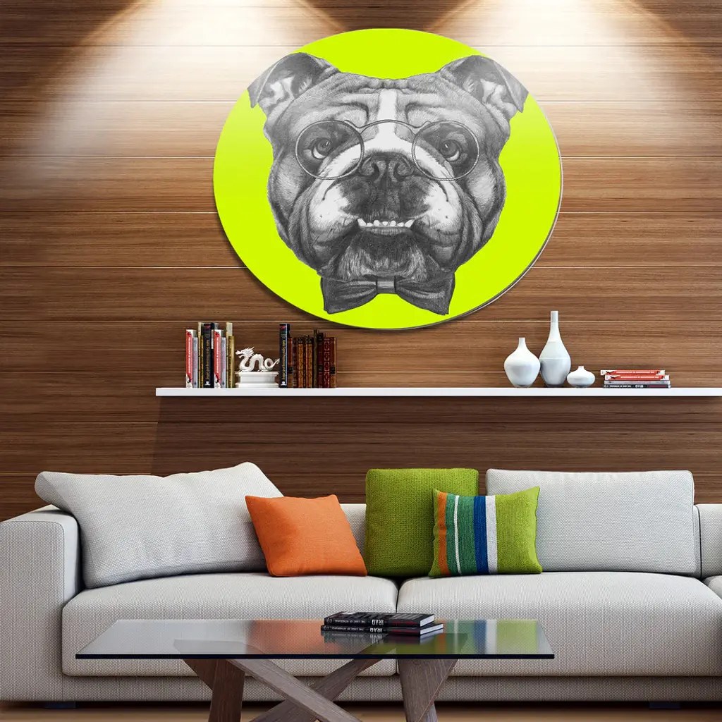 English Bulldog With Bow Tie, Animal Art Large Disc Metal Wall Art, 36"