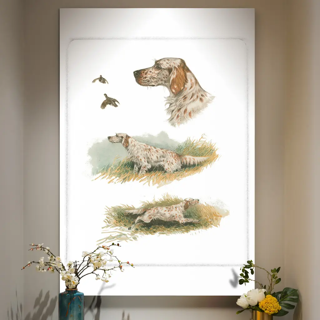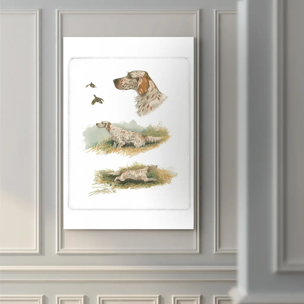 English Setter -Premium Gallery Wrapped Canvas - Ready to Hang A premium hand stretched gallery wrapped canvas print created to last. Featuring a beveled a solid wood stretcher bar, each piece comes ready to hand 5 SIZES AVAILABLE 8''X12'' - Overall Size 16''x20'' - Overall Size 18''x27'' - Overall Size 24''x36'' - Overall Size 32''x48'' - Overall Size Each piece is made to order. Built to Last Each piece comes ready to hang Solid wood stretcher Fade and Water resistant Made domestically