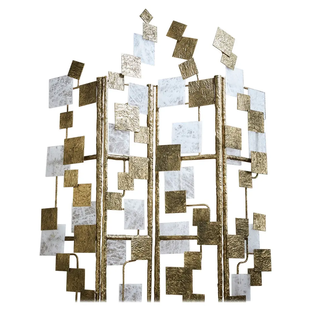 "Enigma" Polished Steel Sculpture Abstract Wall Art, Gold/silver Leaf, 32"x32"