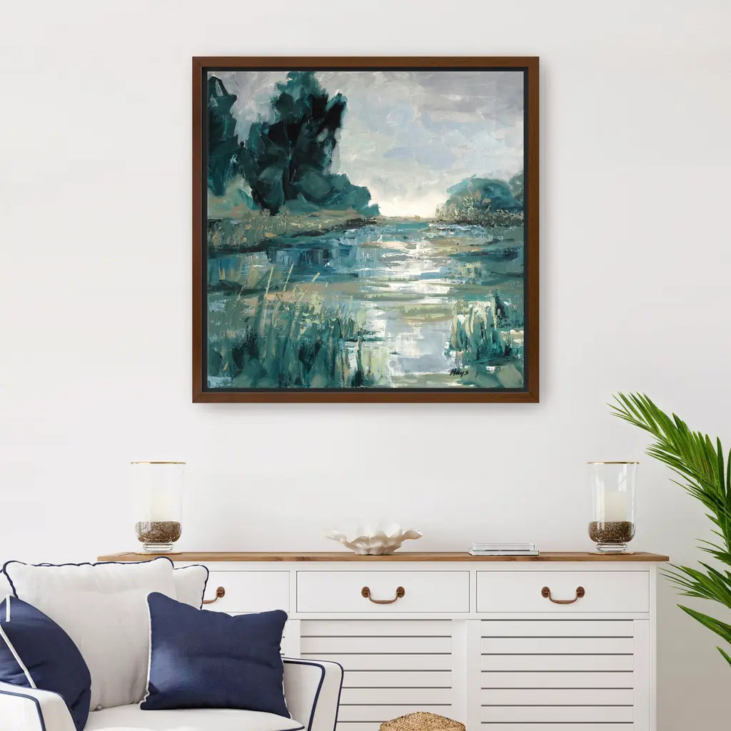 Transform your space with this mesmerizing green abstract moody landscape "Enlightened View" canvas art by Donna Hays. Featuring deep green tones and dynamic compositions, this artwork evokes a sense of mystery and tranquility. The rich colors and captivating design create an atmosphere of sophistication and elegance, making it an ideal statement piece for both contemporary and classic interiors. Available in black frame, dark walnut frame, oak frame, or as a wrapped canvas. Our Gallery Wrap Canvas Prints are proudly assembled with high quality materials in California, USA. Each piece is printed on a thick, archival grade canvas using Giclee technology. It is then hand-stretched by our experienced artisans over solid wood bars, which will not warp over time. The final product is a piece personally crafted for you to confidently display on your wall. Care and Assembly: Ensure that the location of your piece has little to no exposure to heat, sunlight, and moisture. Wipe clean, only if needed. Each piece includes a sawtooth hanger to hang on your wall horizontally.