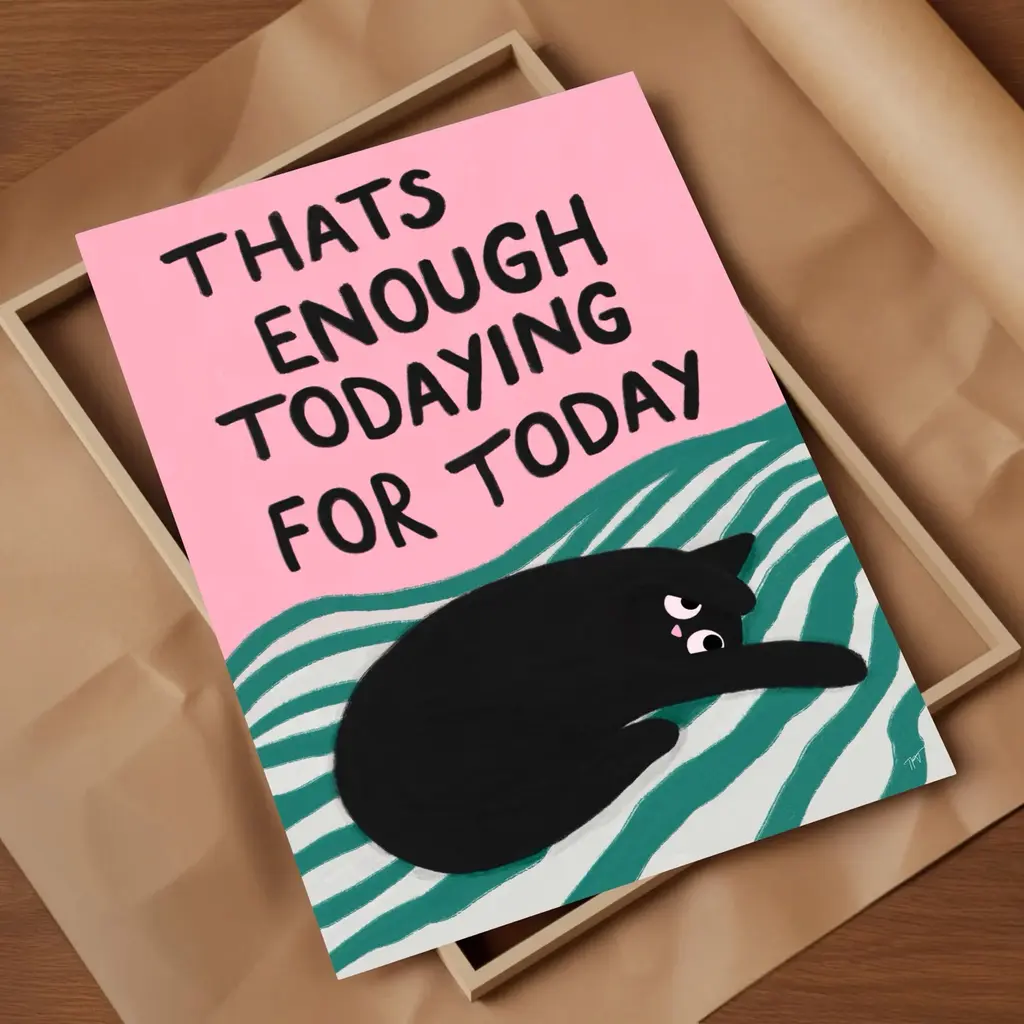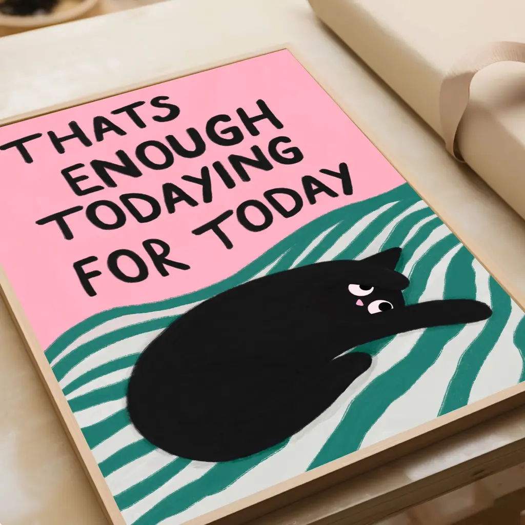 Enough Todaying For Today - Cat Print - LargeIllustrated by Maria. This print is perfect for all cat lovers alike! Printed in the U.K.Printed on premium matte, fine art, archival paperPaper weight: 230 gsmSold without a frame.