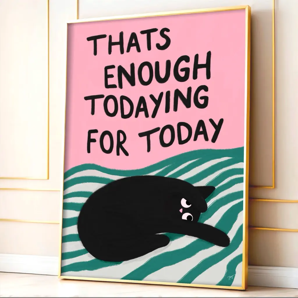 Enough Todaying For Today - Cat Print - MediumIllustrated by Maria. This print is perfect for all cat lovers alike! Printed in the U.K.Printed on premium matte, fine art, archival paperPaper weight: 230 gsmSold without a frame.