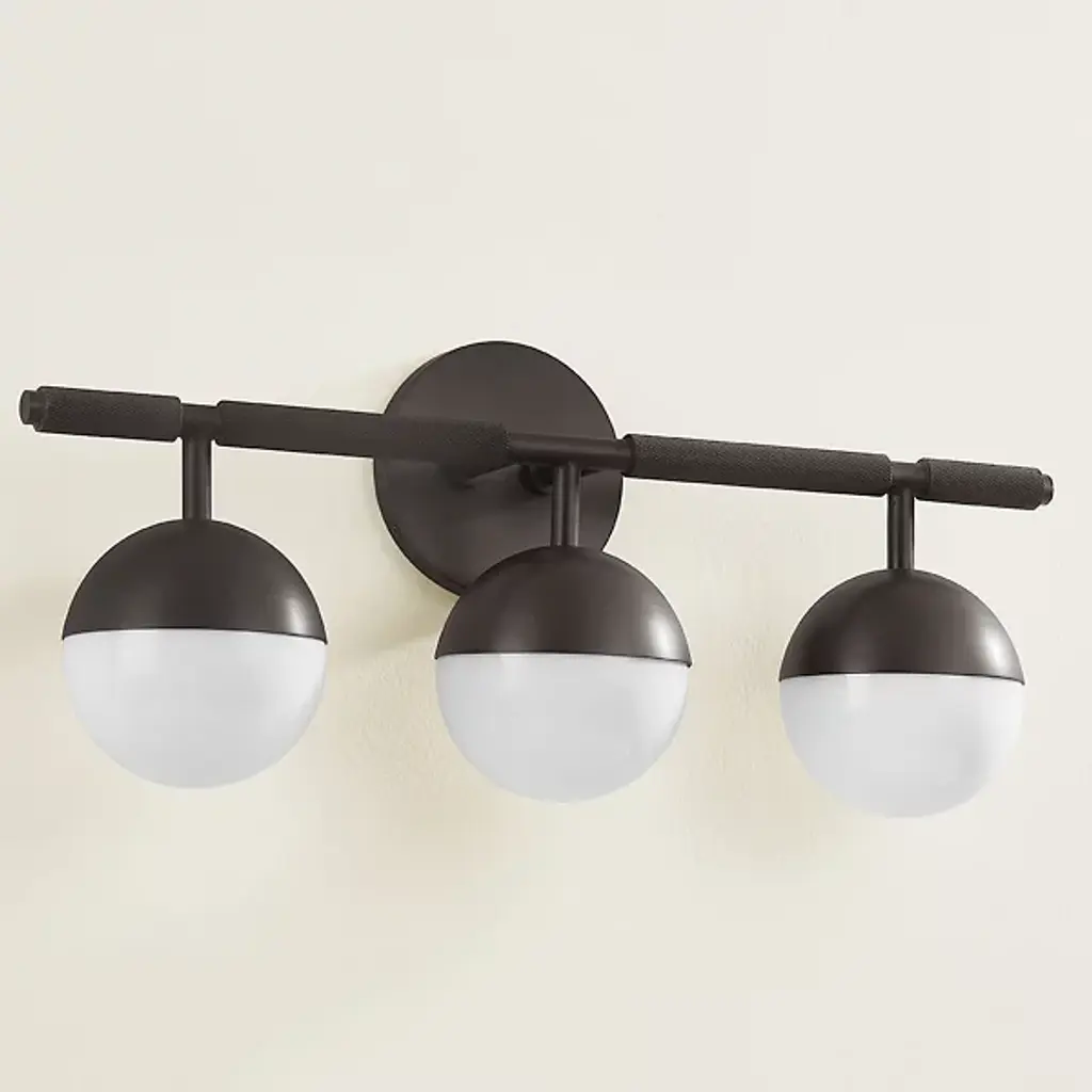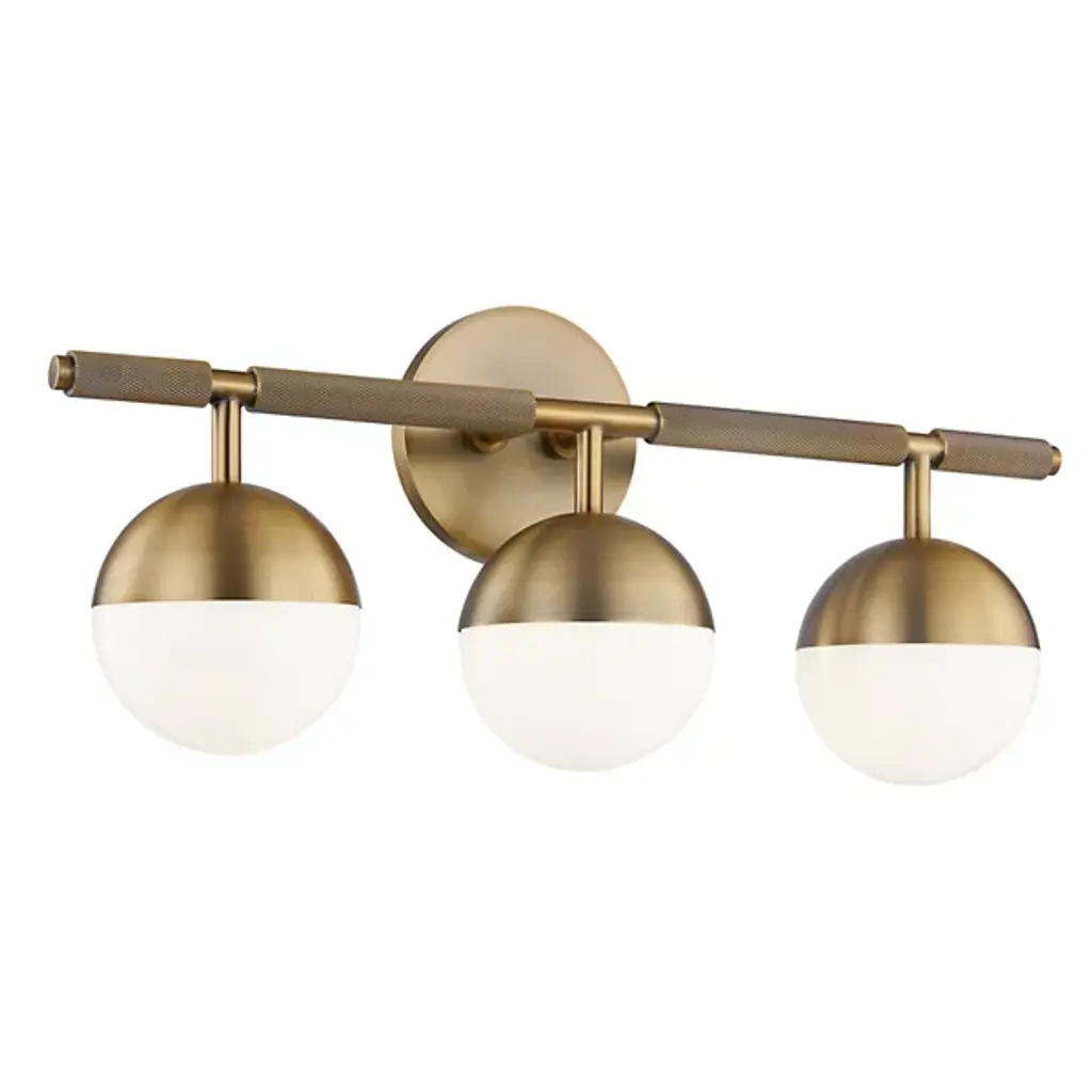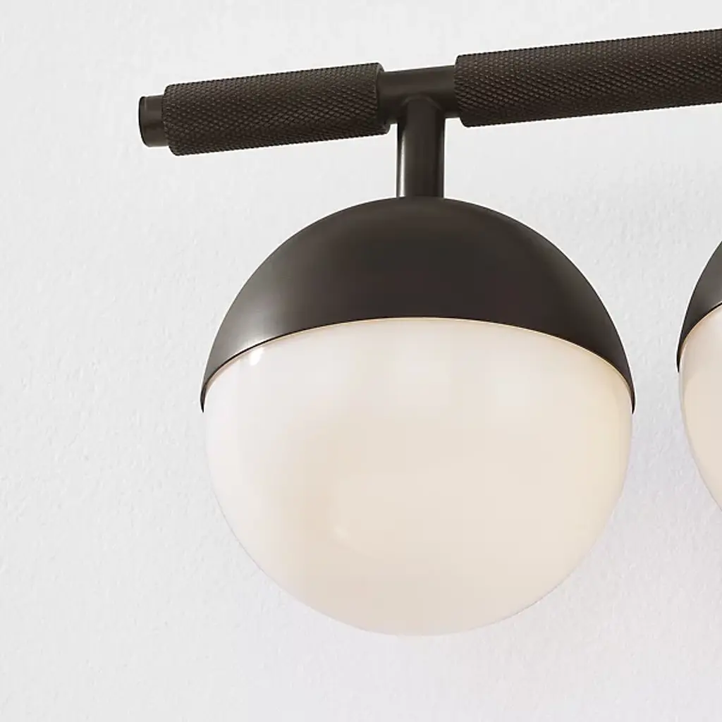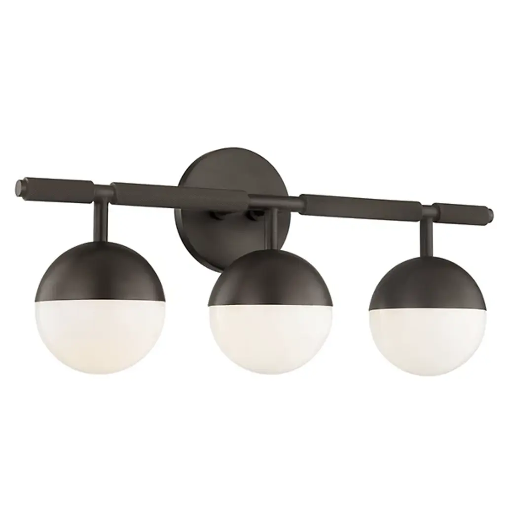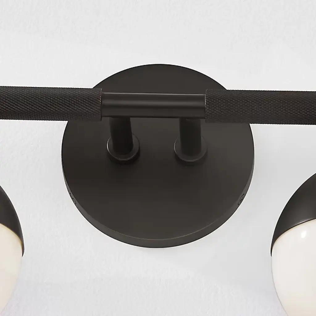 The Enson Vanity Light from Troy Lighting is a radiant piece reminiscent of modern jewelry. Architecturally inspired opal shiny glass globes define its sophisticated character, bringing an air of elegance to your space. The clean silhouette draws influence from mid-century modern design, while meticulous knurled details add a touch of texture upon closer inspection. Crafted from durable steel, Enson is a testament to enduring quality. The LEDs within the globes emit an inviting glow.