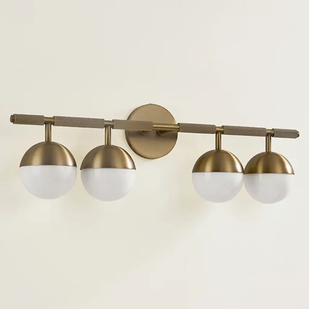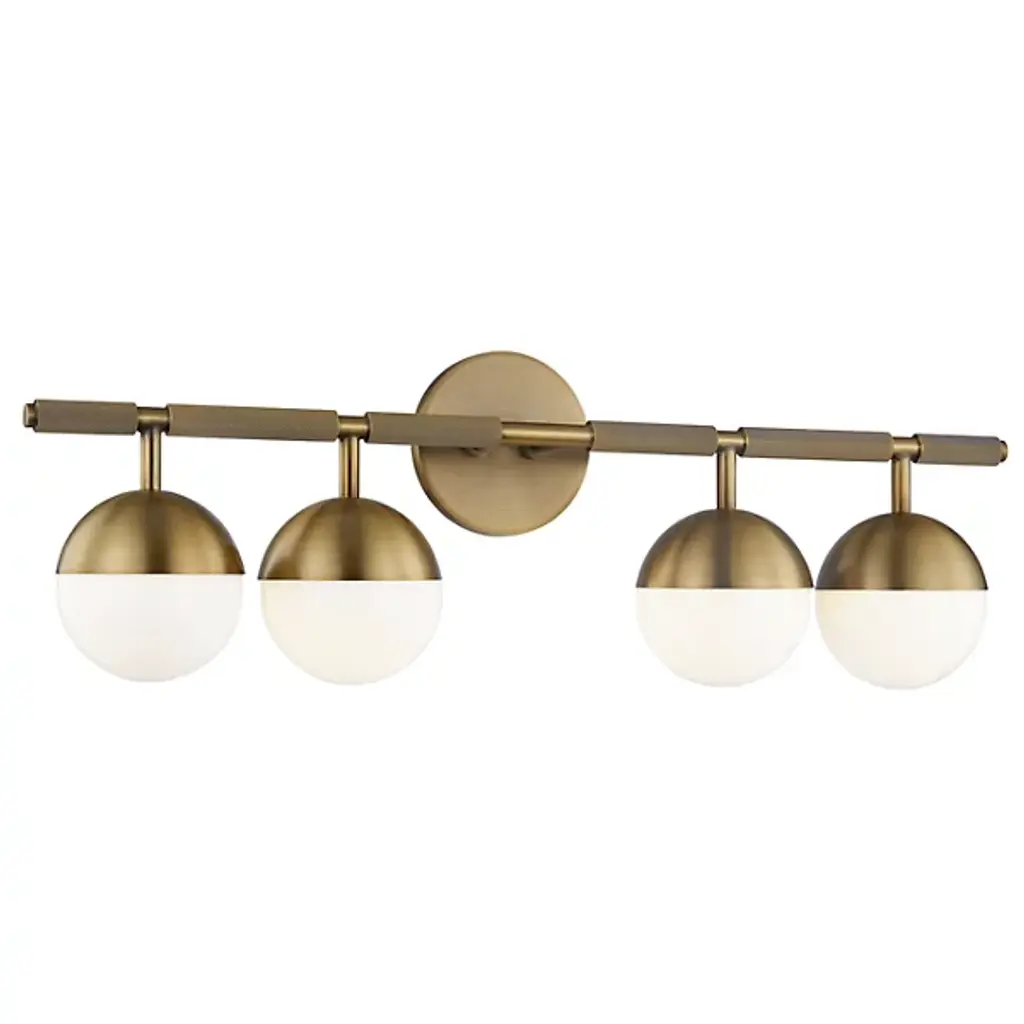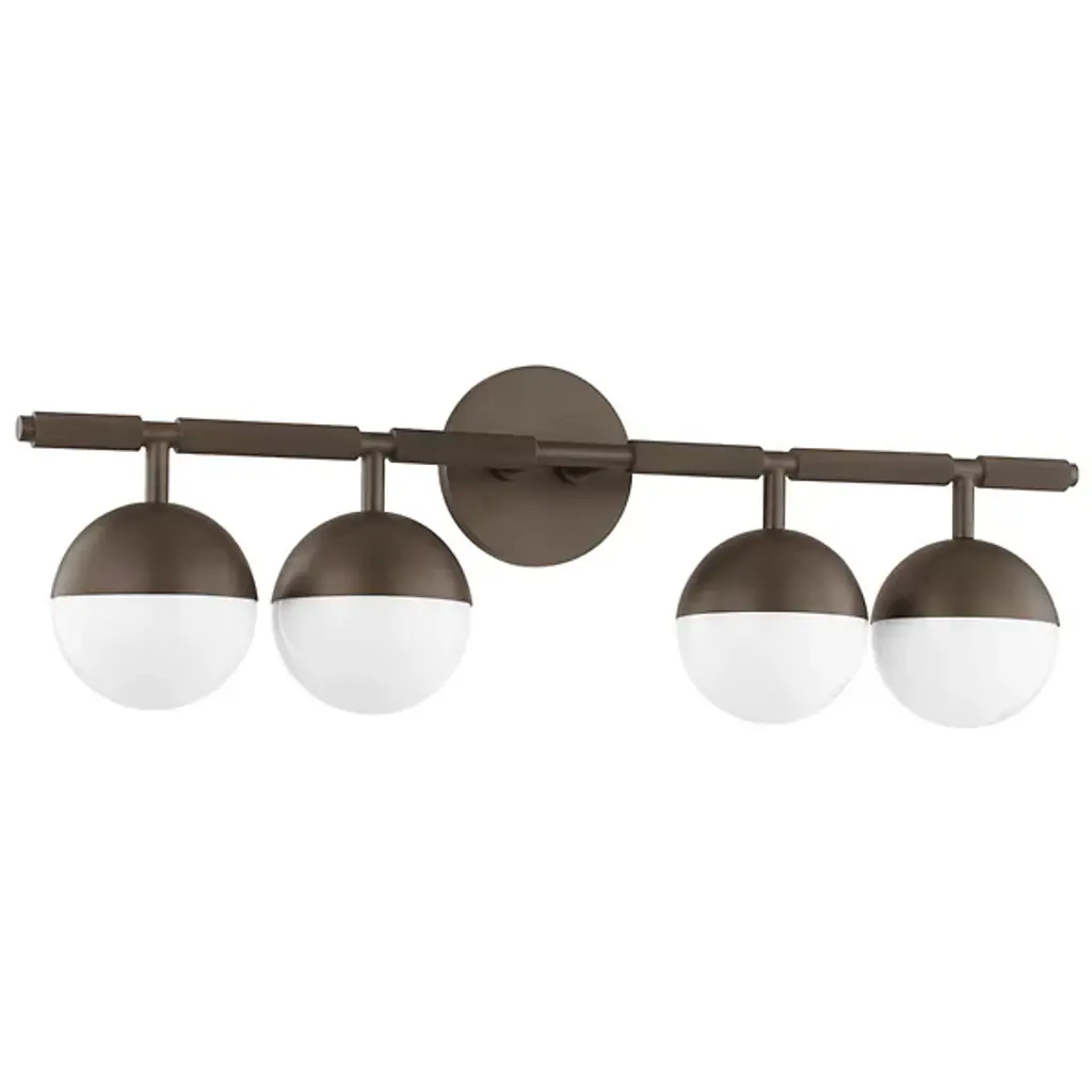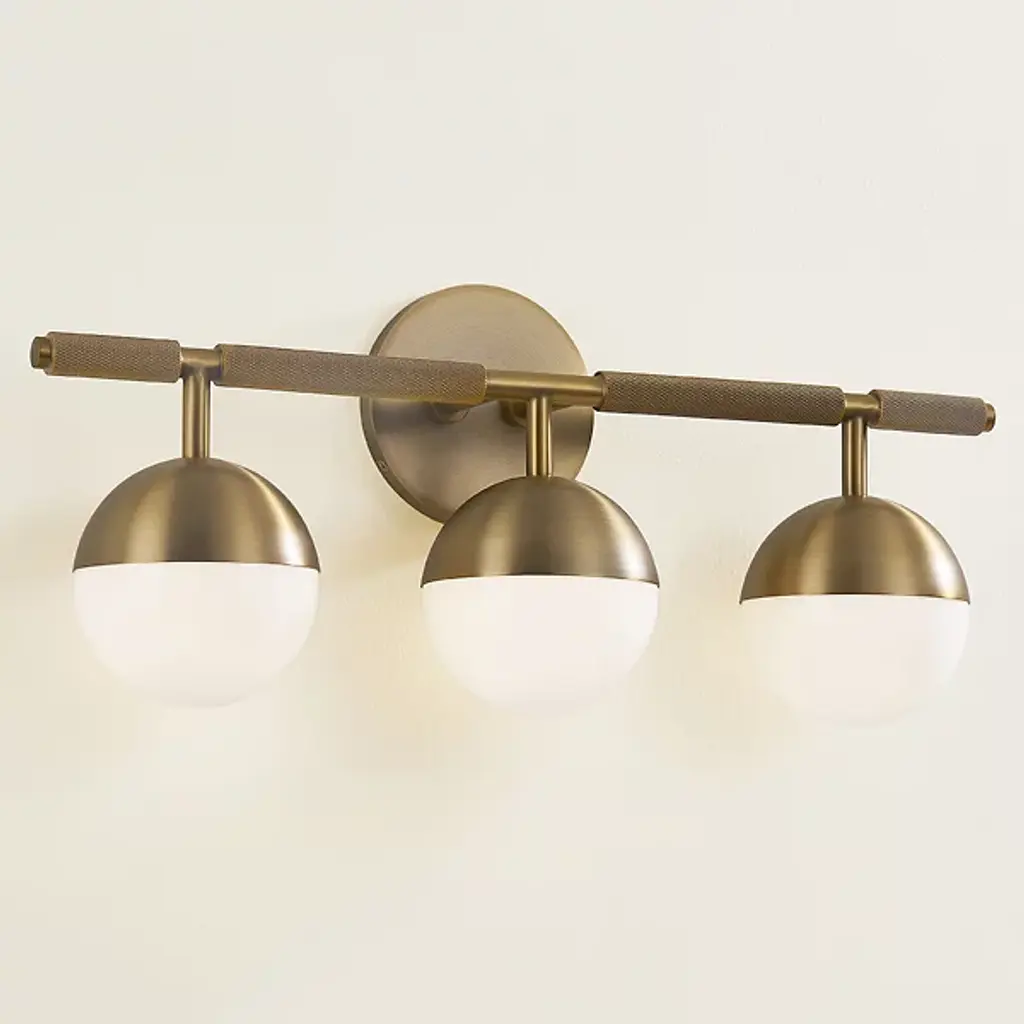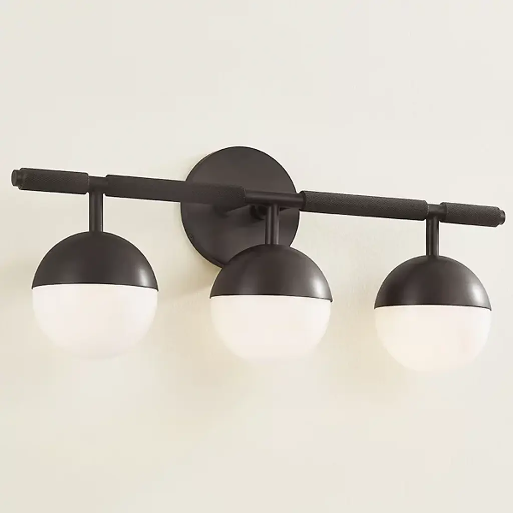 The Enson Vanity Light from Troy Lighting is a radiant piece reminiscent of modern jewelry. Architecturally inspired opal shiny glass globes define its sophisticated character, bringing an air of elegance to your space. The clean silhouette draws influence from mid-century modern design, while meticulous knurled details add a touch of texture upon closer inspection. Crafted from durable steel, Enson is a testament to enduring quality. The LEDs within the globes emit an inviting glow.