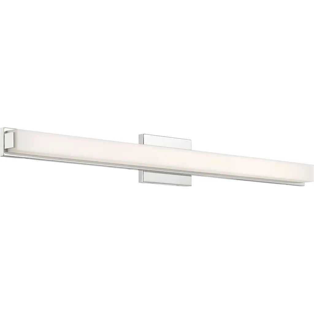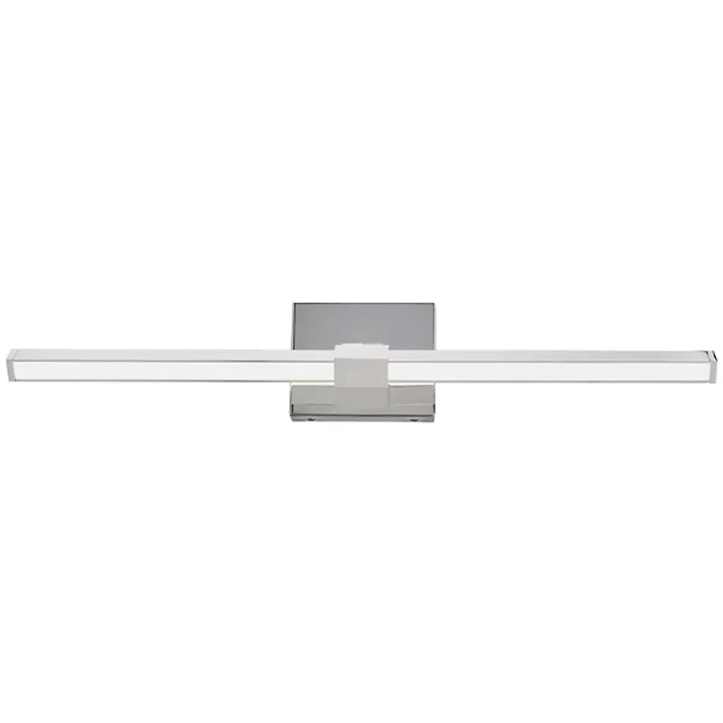 Make your stop in front of the mirror a comfortable and flattering one with the ultra-clean, balanced design of the Epee LED Vanity Light from Abra. It’s a neat accent atop the mirror, mounting to the wall with a compact backplate. The backplate and the linear housing in front produce straight edges that enhance a refined contemporary style. This housing appears like a graphic image with a combo of sleek aluminum and cool acrylic. LEDs flow from one edge of the aluminum to the other. They turn on, glaze the acrylic, and exit as a uniform glow with glare-free properties