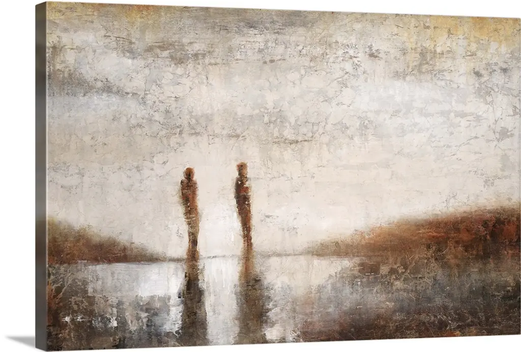 "WATER WHISPERS" by DB Waterman.DB (db) Waterman is a mixed media artist from the Netherlands. Her style is mainly collage that includes a mixed media of photography, paper, acrylic, oil, charcoal, ink and pencil. With these materials and a professional eye, she has carefully reinvented its appearance; making something beautiful and new out of something old and weathered. The result is dreamlike and melancholy. Dimensions: 18"W x .75"L x 18"HGiclee artwork, printed on high quality archival grade canvasStretched and ready to hangOfficially Licensed Digital Print, Artist: db WatermanDimensions: 18"W x .75"L x 18"HMade in USA