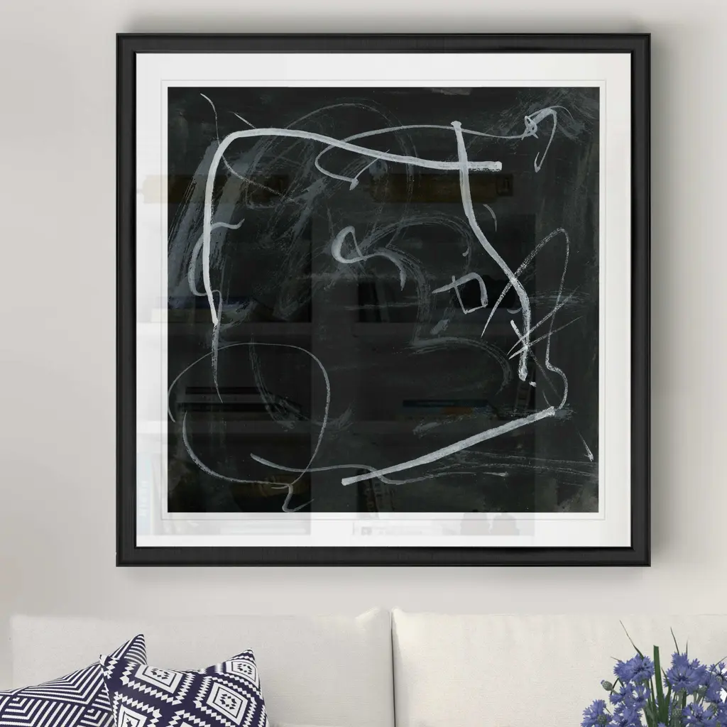 Erase I -Black Framed Print A premium Black Framed giclee print Featuring a beveled a matt , acrylic glass, and a high quality giclee print 5 SIZES AVAILABLE 34''x34''- Overall Size 30''x30'' - Overall Size 26''x26''' - Overall Size 22''x22''' - Overall Size 18''x18''' - Overall Size Each piece is made to order. Built to Last Each piece comes ready to hang Fade and Water resistant Made domestically