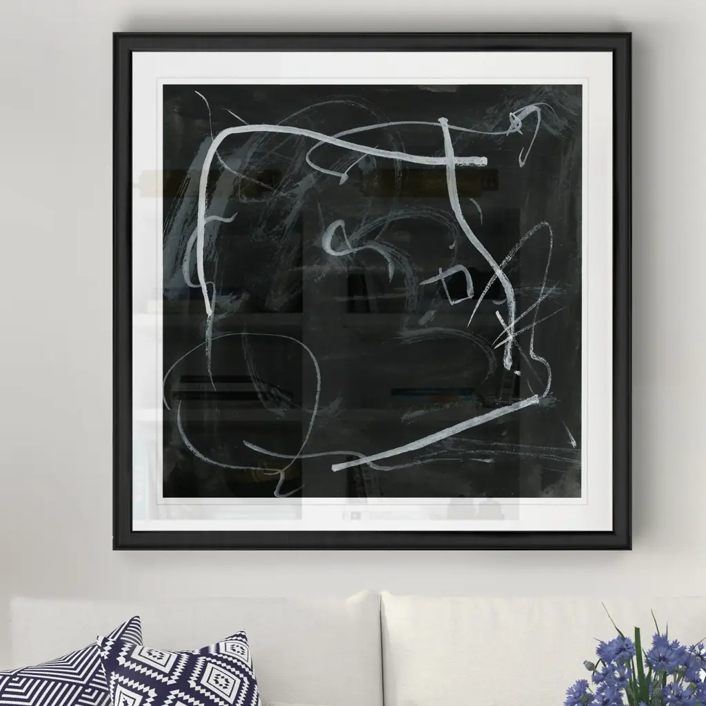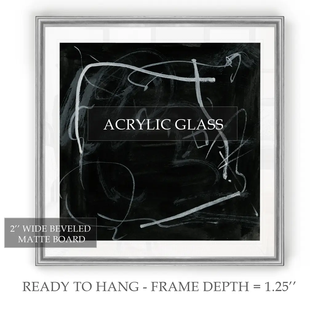 Erase I -Black Framed Print A premium Black Framed giclee print Featuring a beveled a matt , acrylic glass, and a high quality giclee print 5 SIZES AVAILABLE 34''x34''- Overall Size 30''x30'' - Overall Size 26''x26''' - Overall Size 22''x22''' - Overall Size 18''x18''' - Overall Size Each piece is made to order. Built to Last Each piece comes ready to hang Fade and Water resistant Made domestically