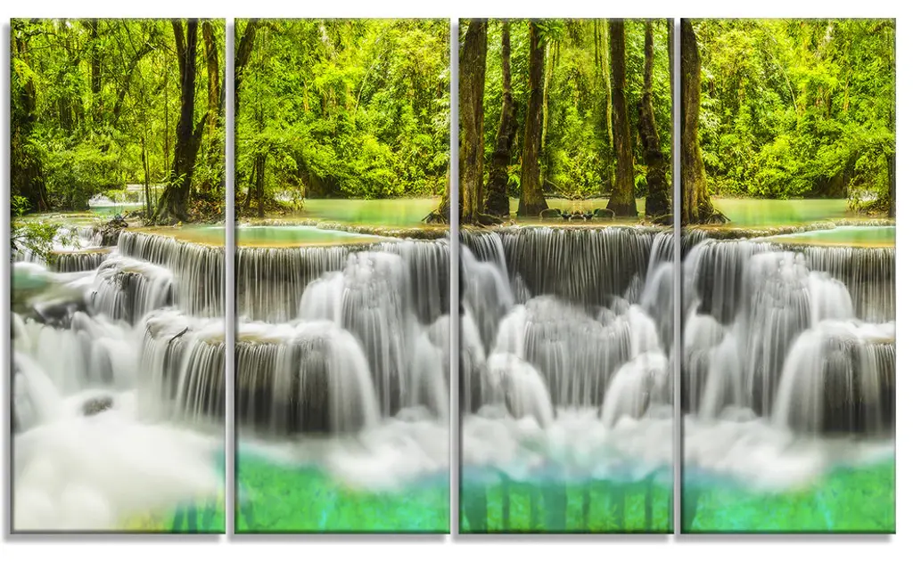 "Erawan Waterfall Kanchanaburi Province" Canvas Print, 4 Panels, 48"x28"
