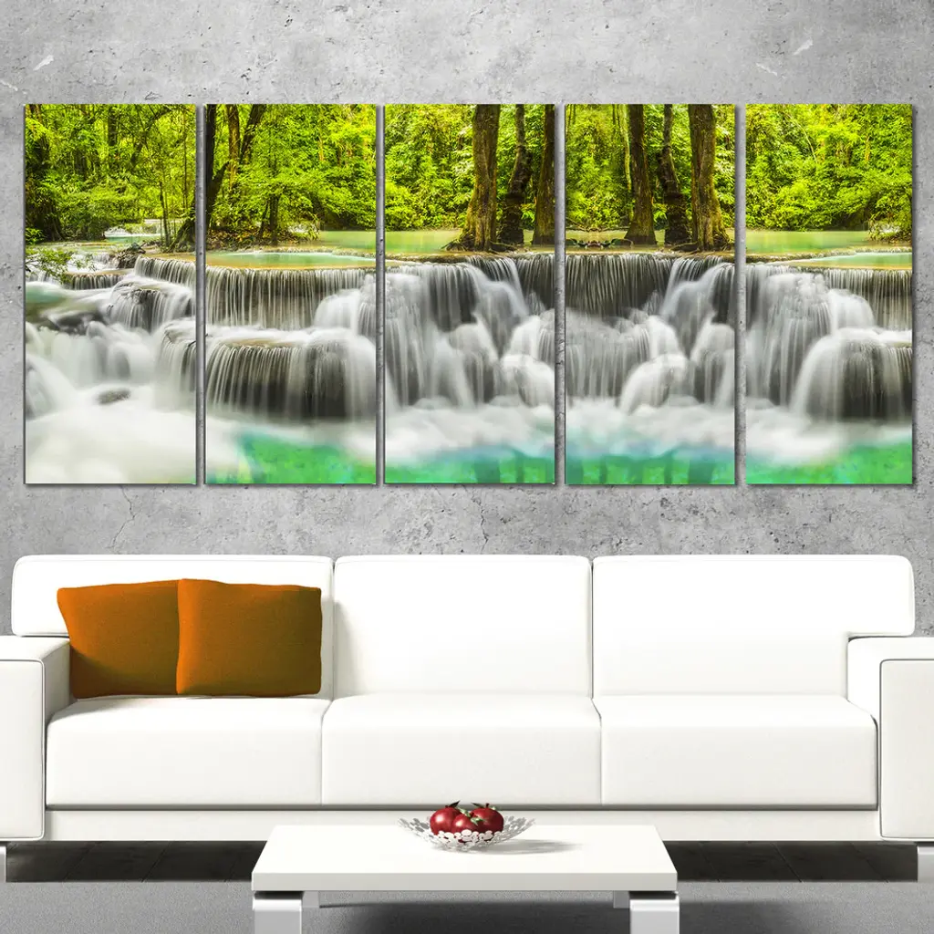 "Erawan Waterfall Kanchanaburi Province" Canvas Print, 5 Panels, 60"x28"