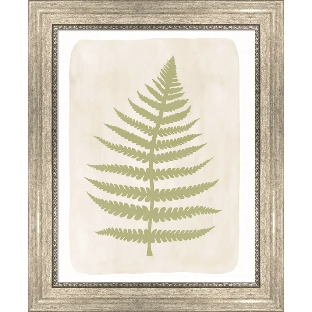 Fern 4 by Erin Clark is a high quality piece of framed artwork. The finished size of this piece is 15" X 18.5". It has a Classic Champagne Silver with Ornate Inner Edge frame and is finished with high quality Acrylic Plexiglass. 100% Satisfaction Guaranteed.