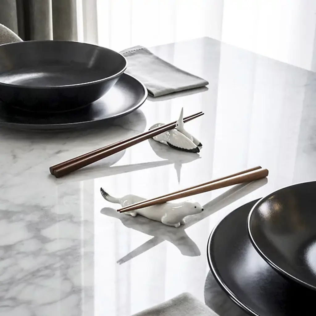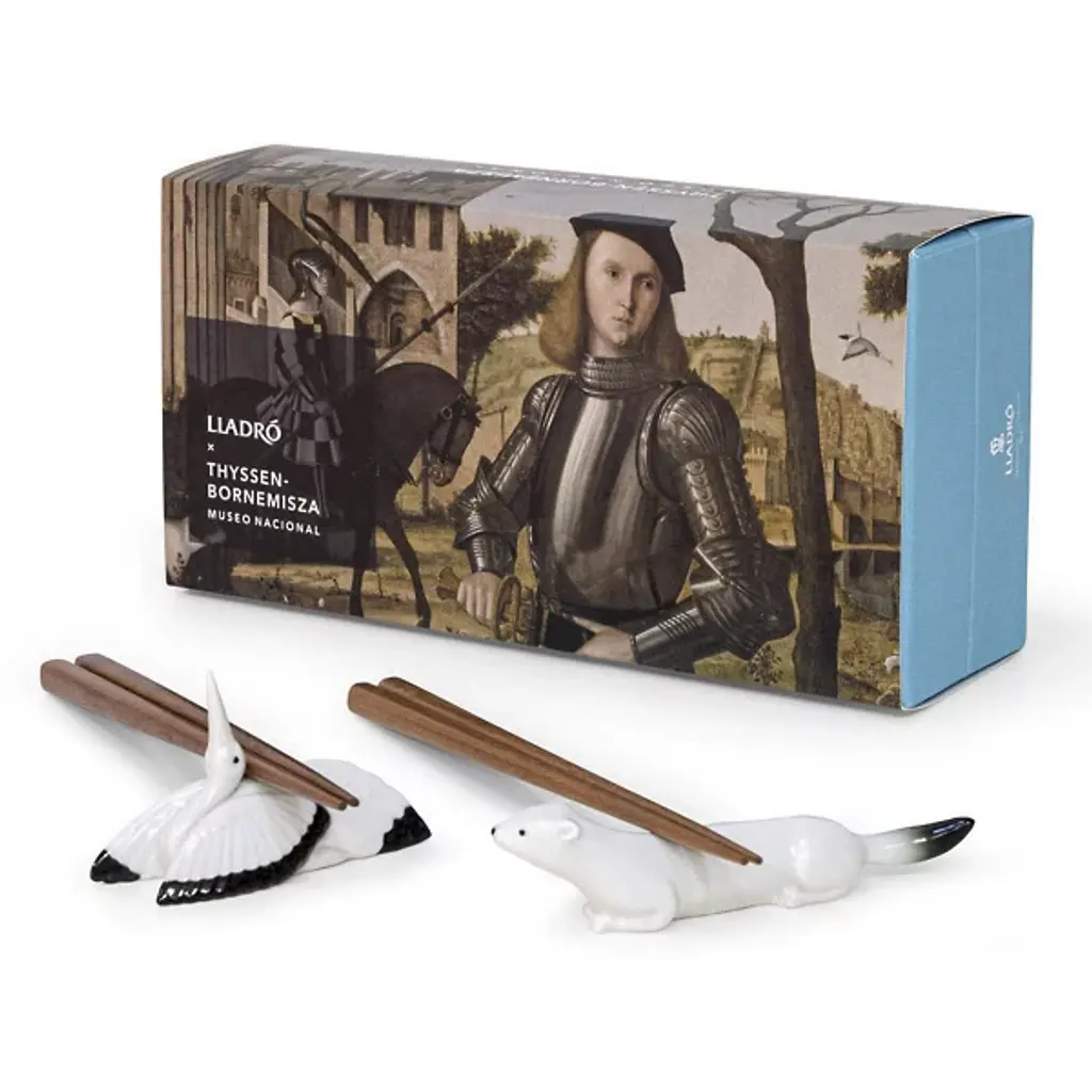 The Ermine and Crane Chop Sticks Set from Lladró, developed by the Design and Décor department in partnership with the Thyssen-Bornemisza National Museum, turns dining implements into miniature art pieces. Each porcelain rest depicts fauna with remarkable detail - the ermine's lithe form and the crane's graceful posture serve as platforms for the wooden chopsticks. The set reimagines traditional Asian dining accessories through a European artistic lens, resulting in pieces that transcend their practical purpose to become conversation starters over dinner tables.