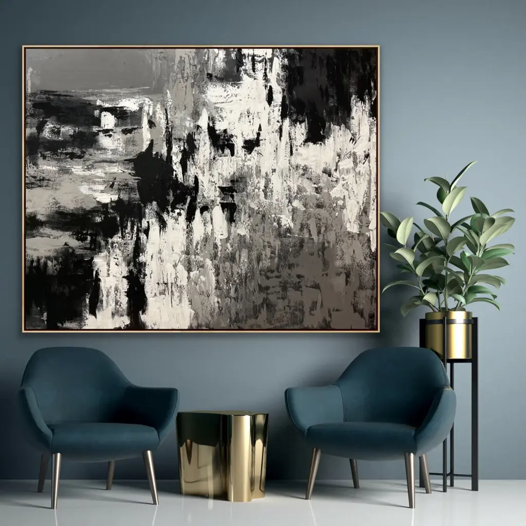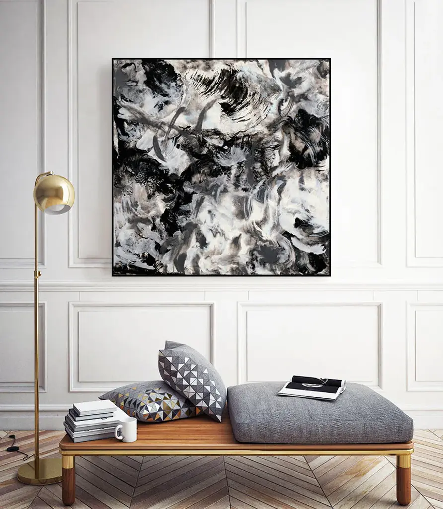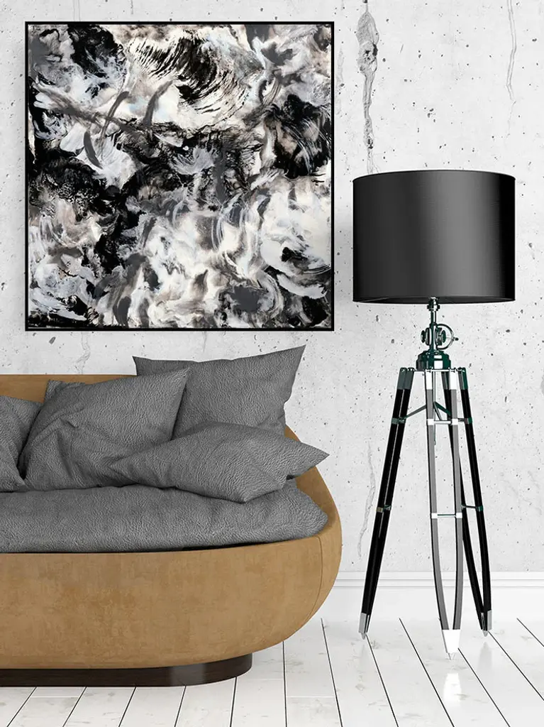 Your ready to hang artwork is printed on canvas then stretched and mounted to a 2-inch thick - hand stained black wood frame. Arrives at your door complete with an easy to use self-leveling hangking kit.