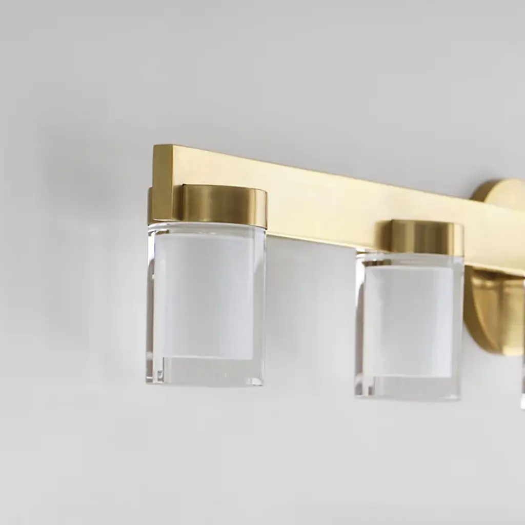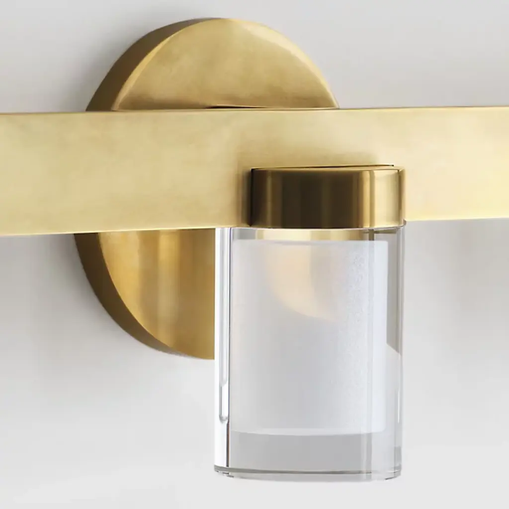 Meet the Esfera LED Vanity Light from Visual Comfort Modern, a testament to elemental materials and spatial symmetries. Designed by Kelly Wearstler, this fixture is a modern representation of cylindrical multi-dimensional prisms seamlessly merging with linear metal detailing. The simple, retro form is secured by a circular wall plate, with the integration of LED lamping within crystal cylinders extending from a horizontal bar that dispenses a gorgeous glow around it. The fixture is at once visually textured and straightforward, offering ADA-compliant and damp-listed functionality, creating a harmonious blend of mid-century modern and contemporary style, delivering refined form and potent function with its sophisticated design.