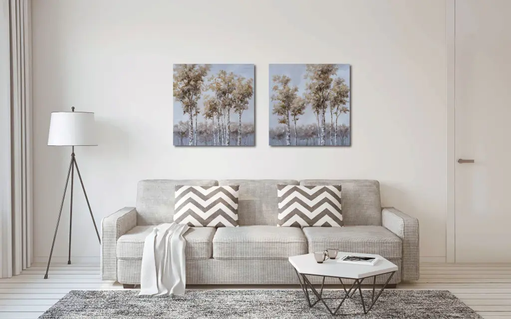 This is a 100% Hand Painted Original Wall Art made with oil paints on canvas stretched over a 1.5" thick wooden frame. The painting has several layers of color and has lots of movement and brush strokes on it. The painting is professionally hand-stretched on high quality stretch bar and ready to hang out of the box. Great size gallery wrapped canvas that works in a variety of rooms. Every single piece of our art is one of a kind piece because of the handcrafted nature of the painting.
