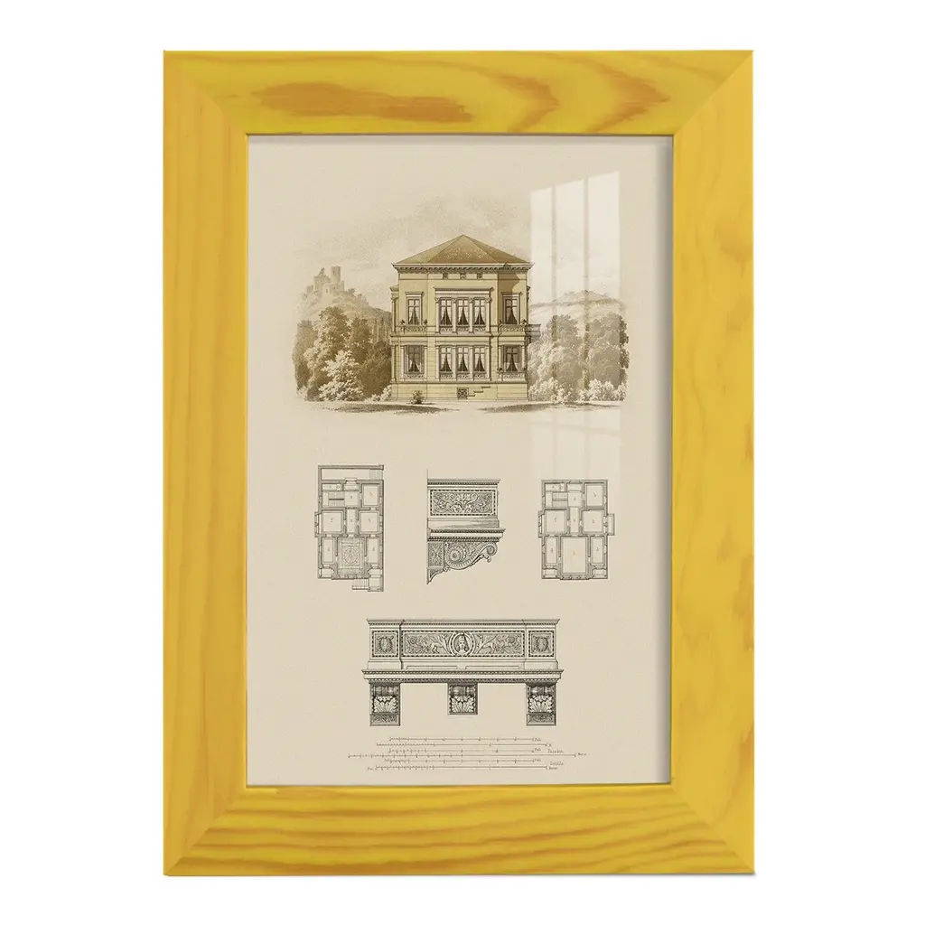 Estate And Plan I -Framed Print W/glass-Cherry Red - 12x15 - Yellow