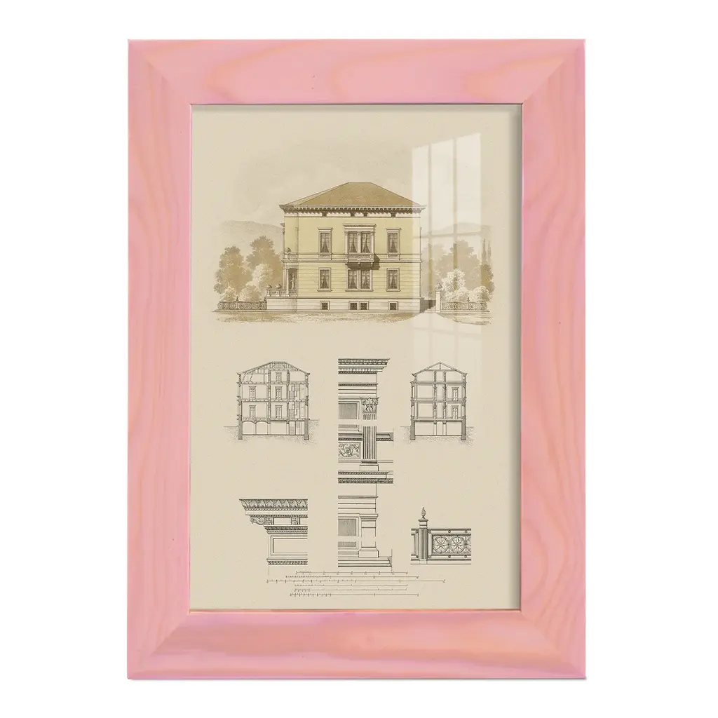 Estate And Plan Ii -Framed Print W/glass-Cherry Red - 12x15 - Pink