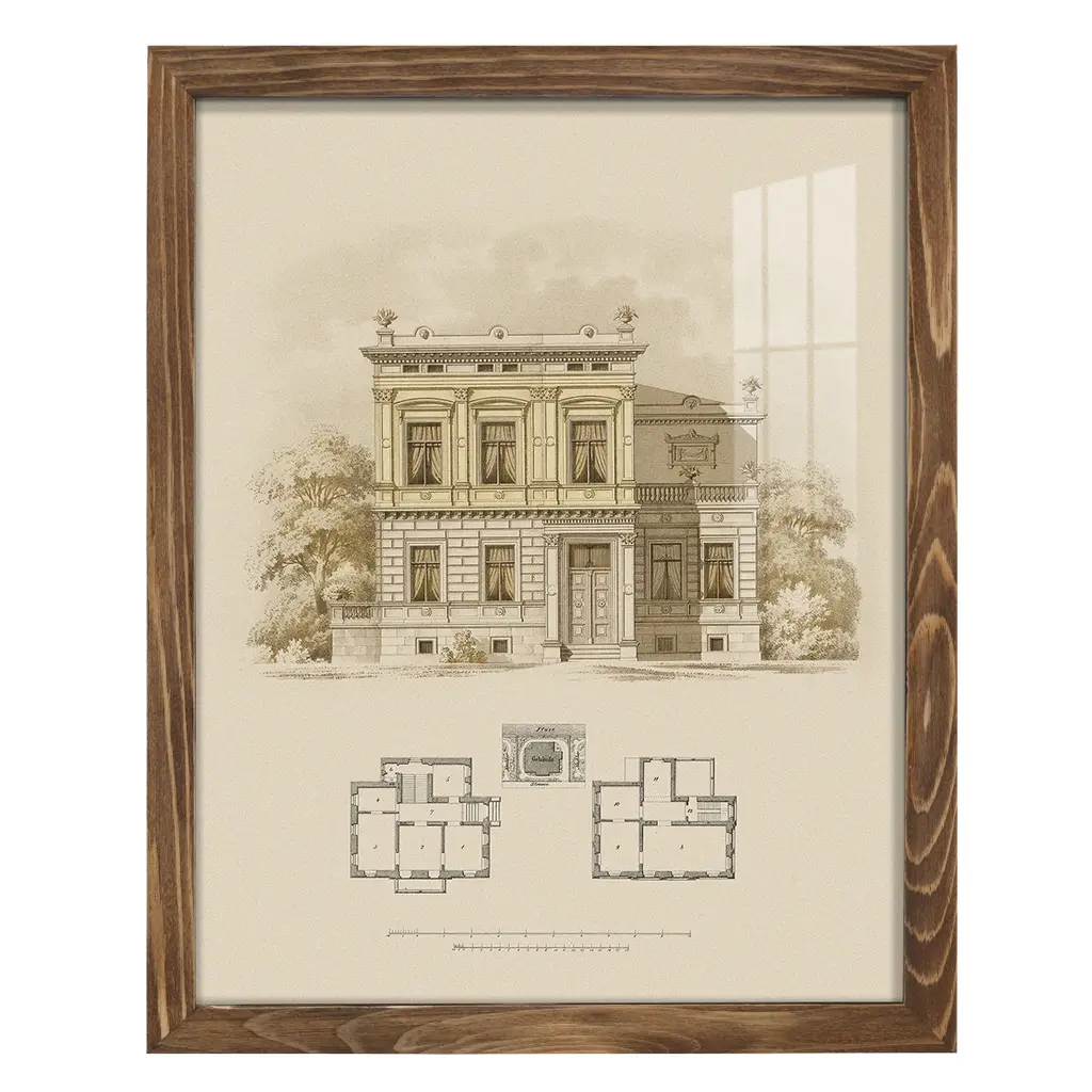 Estate And Plan Iii -Framed Print W/glass-Cherry Red - 12x15 - Walnut