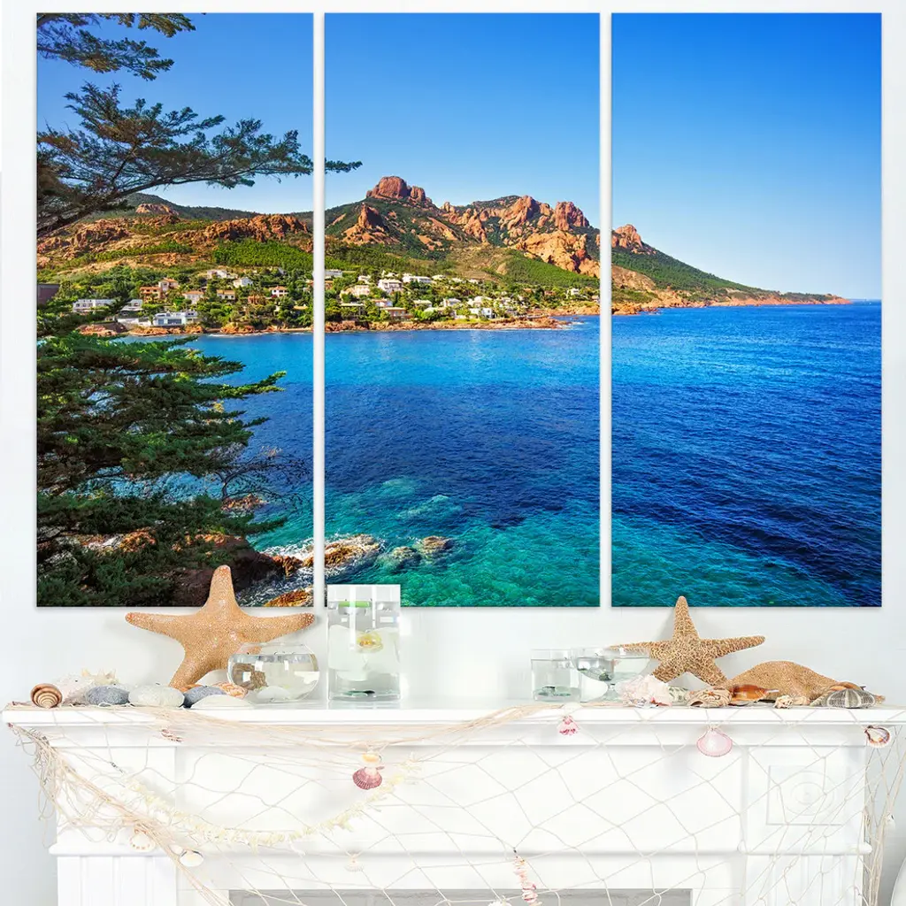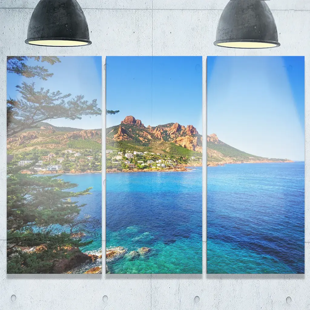 "Esterel Rocks Beach Coast In Blue" Metal Wall Art, 3 Panels, 36"x28"
