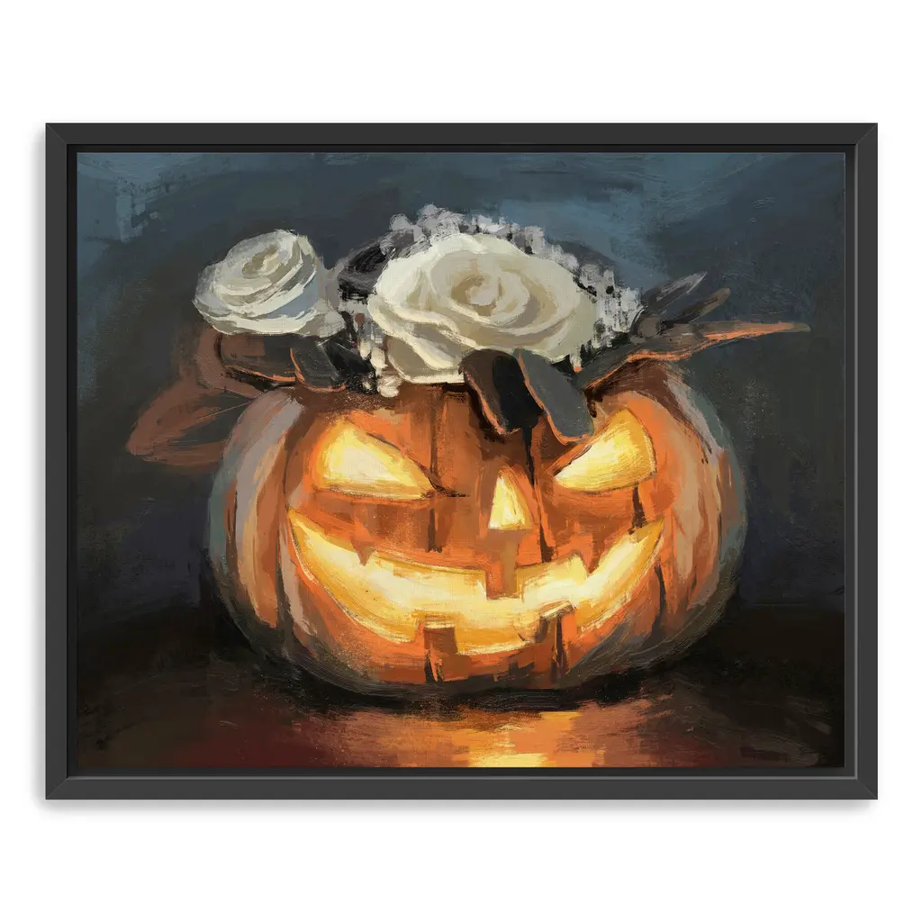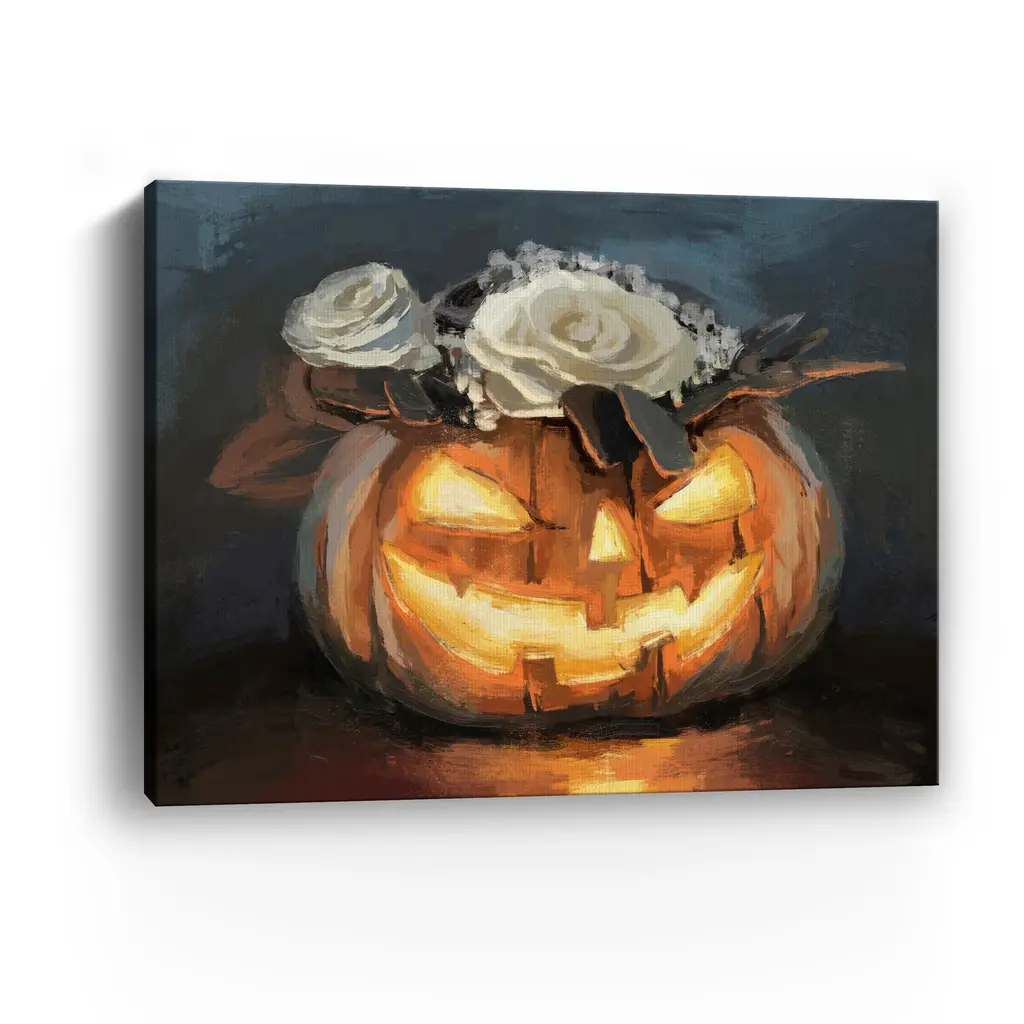 A quirky jack-o-lantern with wide eyes and a crooked grin. Vibrant orange, white, and gray tones add playful energy to your Halloween wall art. Our Gallery Wrap Canvas Prints are proudly assembled with high quality materials in California, USA. Each piece is printed on a thick, archival grade canvas using Giclee technology. It is then hand-stretched by our experienced artisans over solid wood bars, which will not warp over time. The final product is a piece personally crafted for you to confidently display on your wall. Care and Assembly: Ensure that the location of your piece has little to no exposure to heat, sunlight, and moisture. Wipe clean, only if needed. Each piece includes hanging hardware to hang on your wall horizontally.