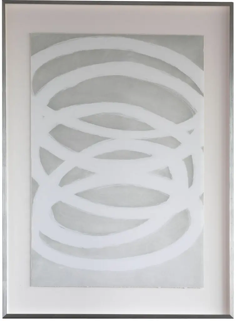 The interlocking ovals are almost reminiscent of cartoon drawings of cyclones, yet the ultimate effect is one of serenity. Printed on heavy cotton rag paper, this print arrives framed and ready to hang.