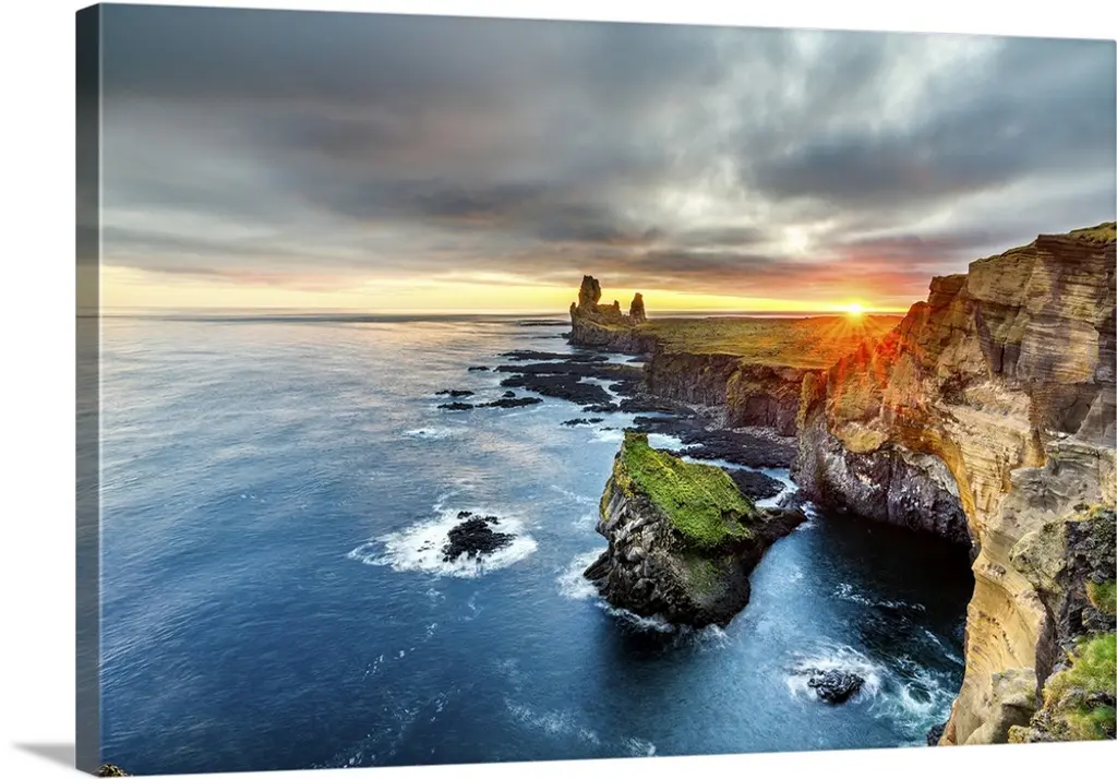 The Etretat Aval Cliff and Rocks canvas art print is sure to make an impression on anyone who sees it. This artwork is gallery wrapped around a 1-inch solid wood frame and arrives carefully packaged and entirely ready to hang on the wall. Design Art only uses the highest resolution and pigments to ensure a crisp colorful print that is never faded or pixelated. This artwork is sure to be a conversation starter in any home or office.