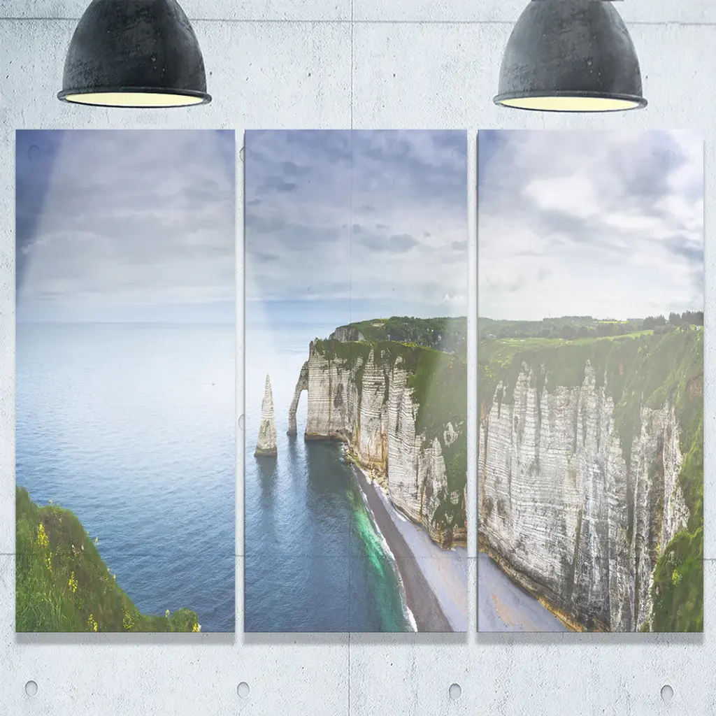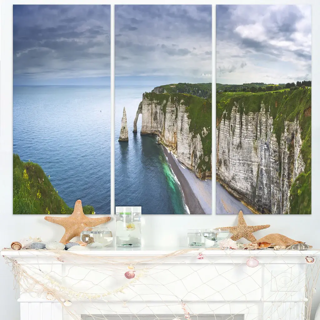 "Etretat Aval Cliff And Rocks" Oversized Beach Metal Wall Art, 3 Panels, 36"x28"