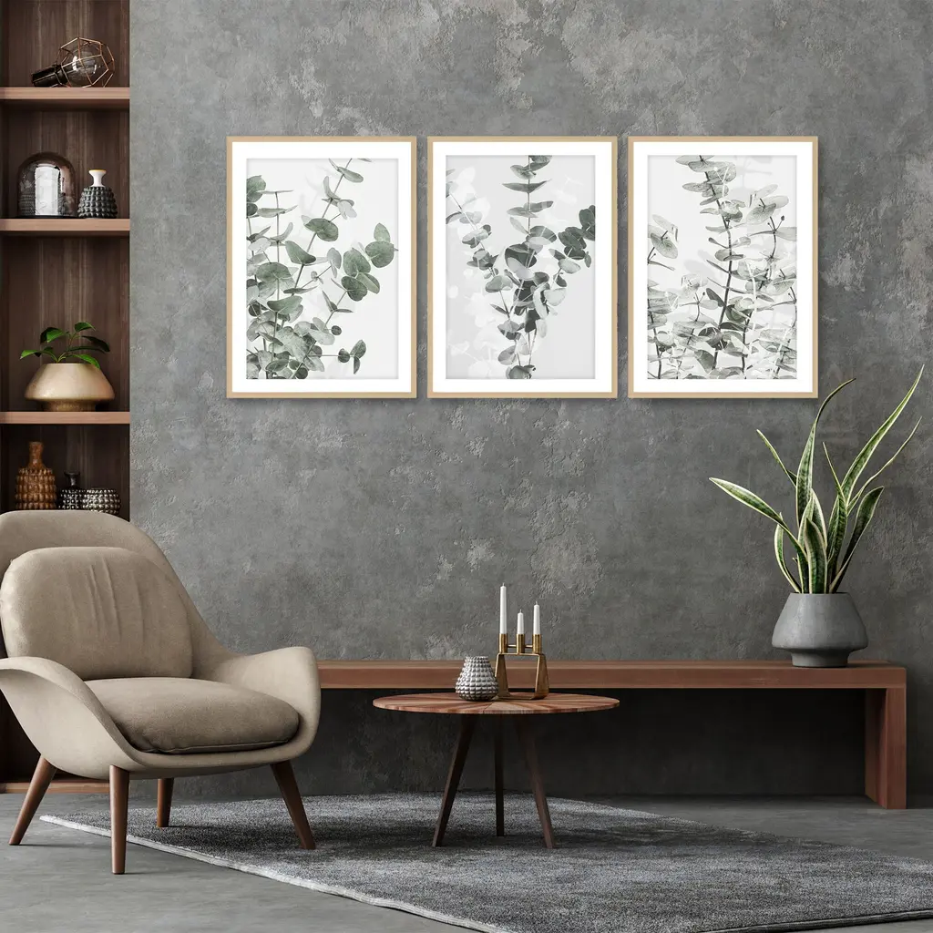 Add fresh botanicals to your space with Studio III's "Eucalyptus" framed print three-piece wall art set. The growing leaves of the eucalyptus plant in shades of green and white add a modern touch to any room. Handcrafted in Chattanooga, Tennessee, by Ready2HangArt using a locally sourced artist print, finished with a rear hanger for simple installation.