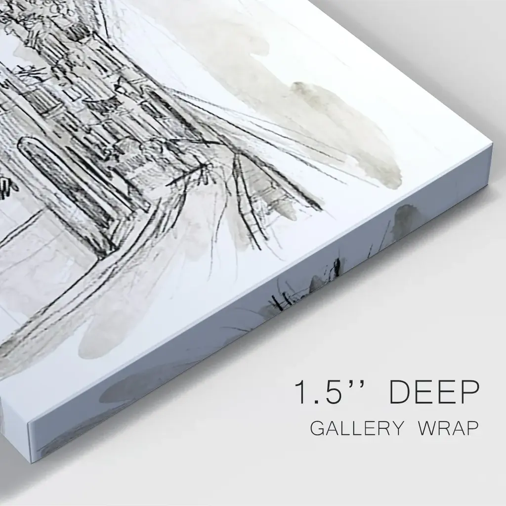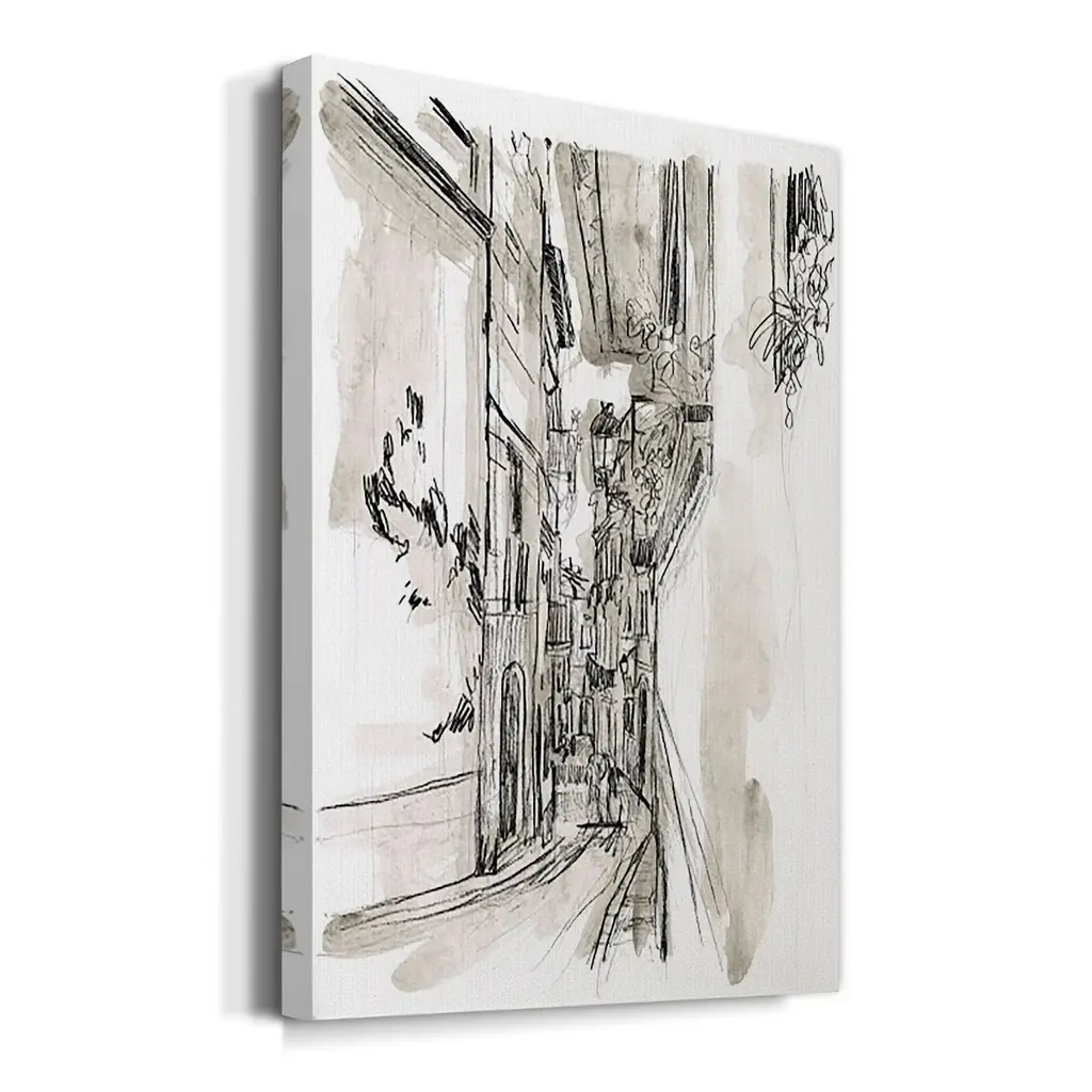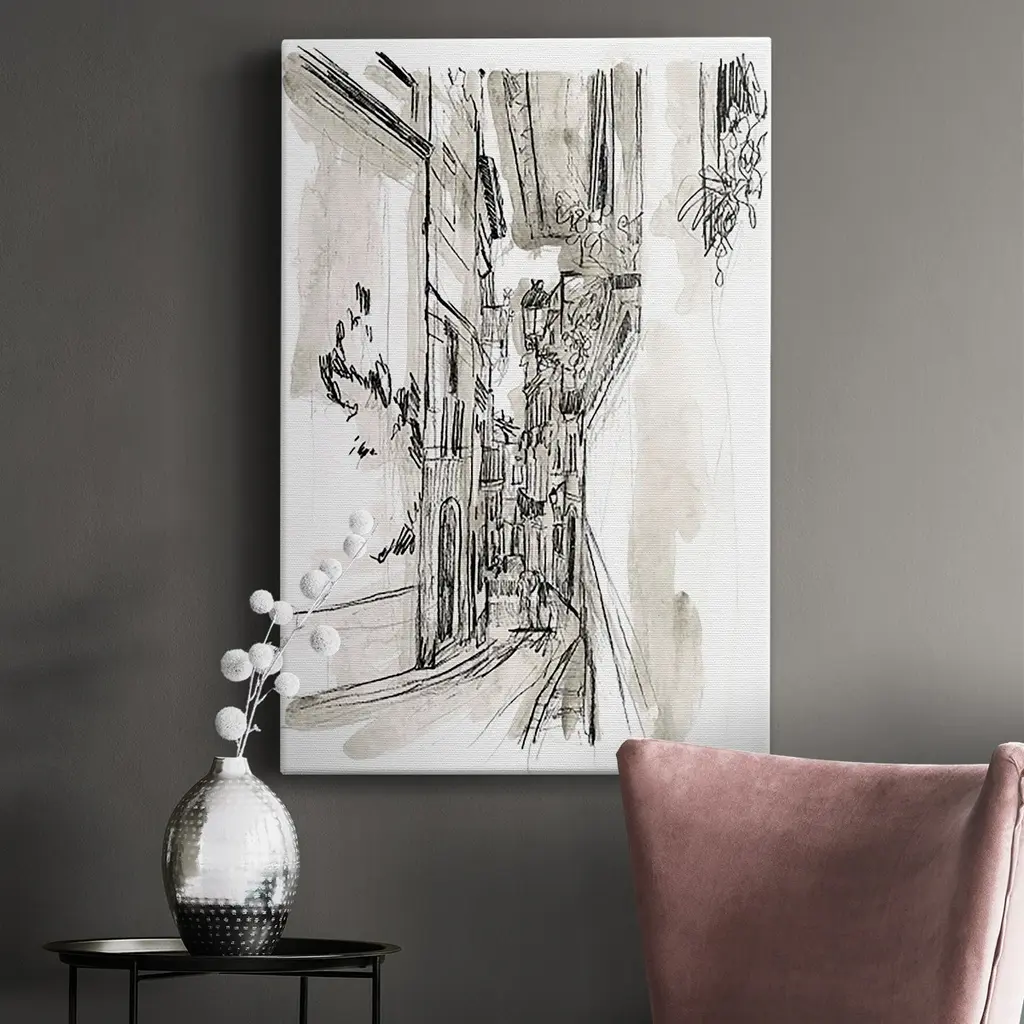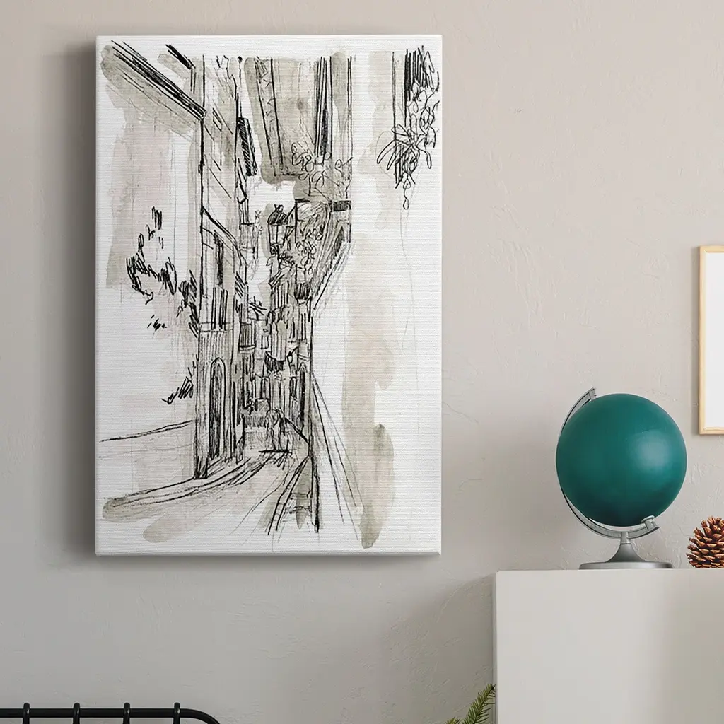 Europe Street Sketches I Premium Gallery Wrapped Canvas - Ready to Hang A premium hand stretched gallery wrapped canvas print created to last. Featuring a beveled a solid wood stretcher bar, each piece comes ready to hand 6 SIZES AVAILABLE 8''X12'' - Overall Size 12''X18'' - Overall Size 18''X27'' - Overall Size 24''x36'' - Overall Size 32''x48'' - Overall Size 40''x60'' - Overall Size Each piece is made to order. Built to Last Each piece comes ready to hang Solid wood stretcher Fade and Water resistant Made domestically