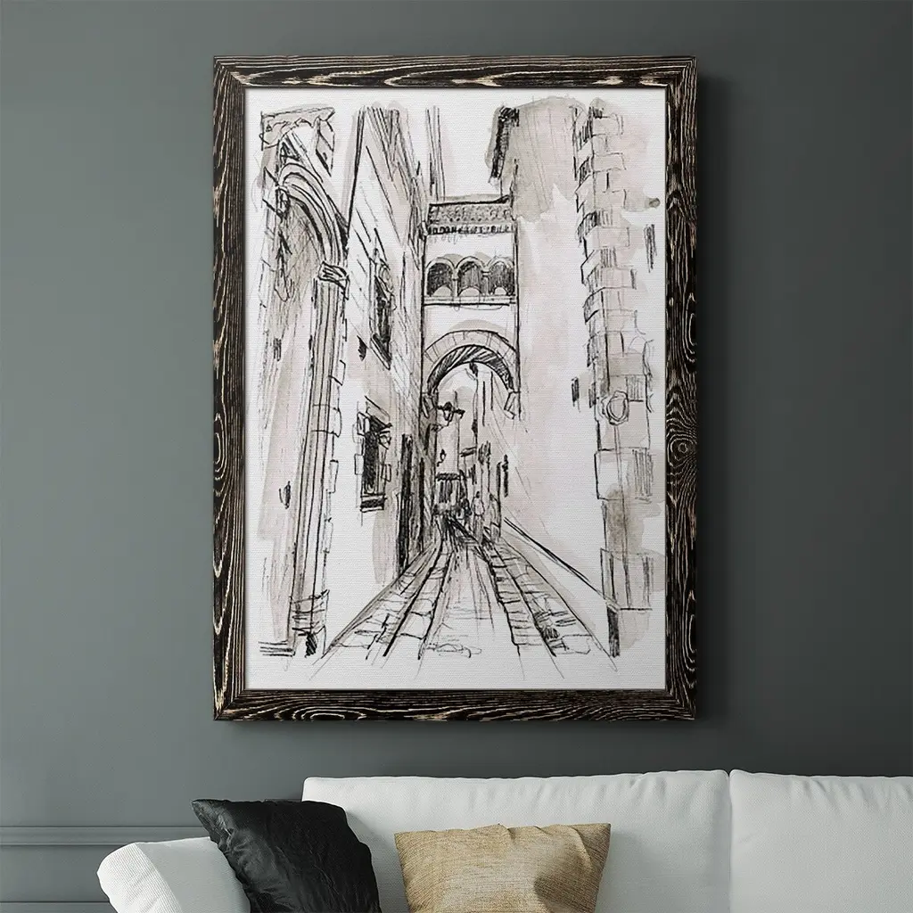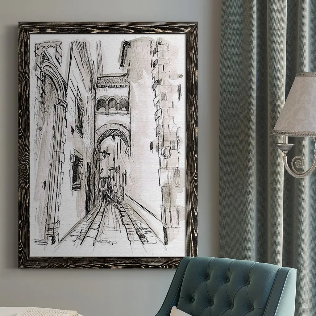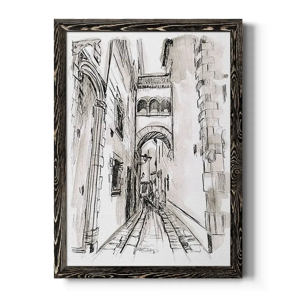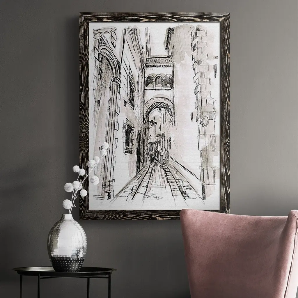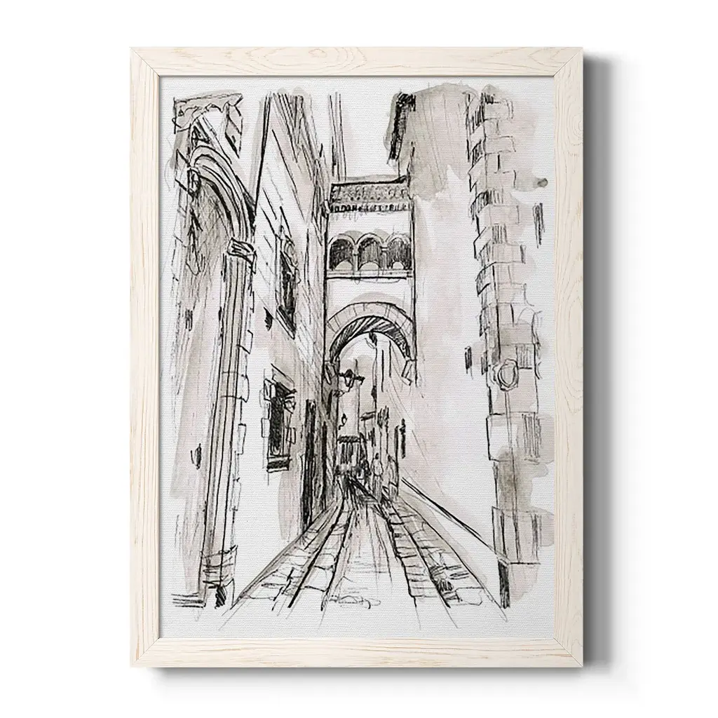 Europe Street Sketches Ii-Premium Framed Canvas - Ready To Hang - 27.5x37.5 - Grey