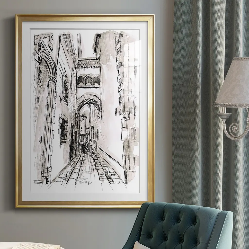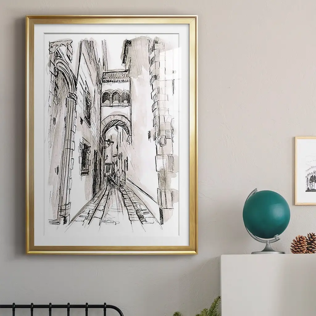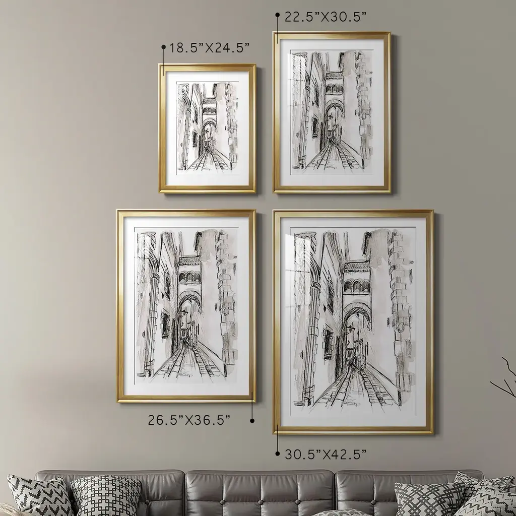 Europe Street Sketches II Premium Framed Print - Ready to Hang A Premium Framed Print created to last. Framed in distressed wood and available in an array of sizes and colors Featuring a beveled a solid wood stretcher bar, each piece comes ready to hand 4 SIZES AVAILABLE 30.5''X42.5'' - Overall Size 26.5'X36.5'' - Overall Size 22.5''x30.5'' - Overall Size 18.5''x24.5'' - Overall Size Each piece is made to order. Each piece comes with hanging hardware. Made in the USA Ready to Hang Giclee Paper Print Acrylic Glass Beveled Matt Board