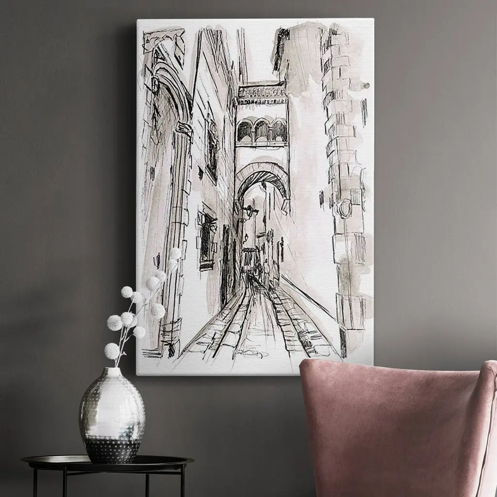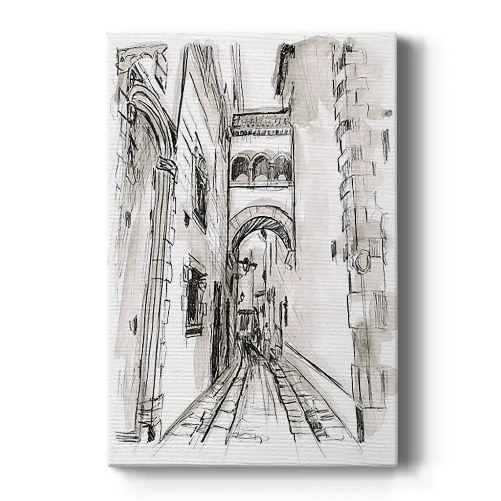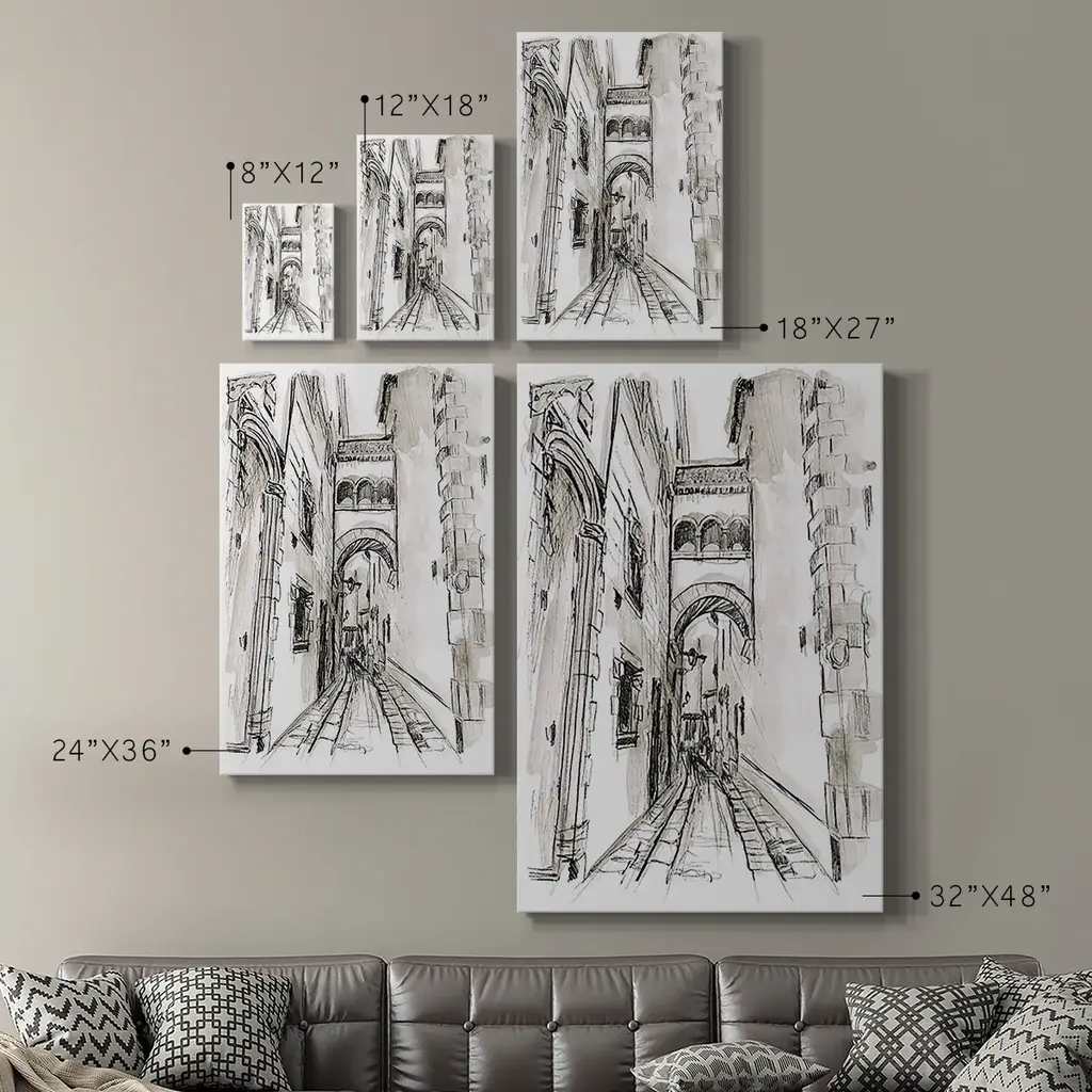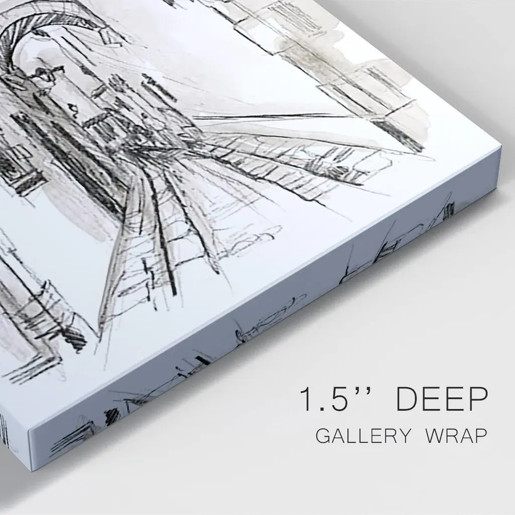 Europe Street Sketches II Premium Gallery Wrapped Canvas - Ready to Hang A premium hand stretched gallery wrapped canvas print created to last. Featuring a beveled a solid wood stretcher bar, each piece comes ready to hand 6 SIZES AVAILABLE 8''X12'' - Overall Size 12''X18'' - Overall Size 18''X27'' - Overall Size 24''x36'' - Overall Size 32''x48'' - Overall Size 40''x60'' - Overall Size Each piece is made to order. Built to Last Each piece comes ready to hang Solid wood stretcher Fade and Water resistant Made domestically