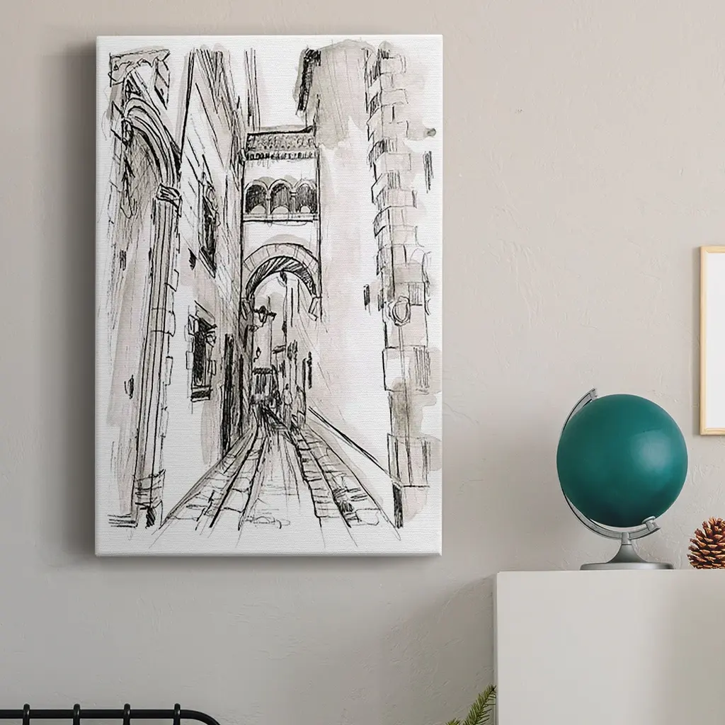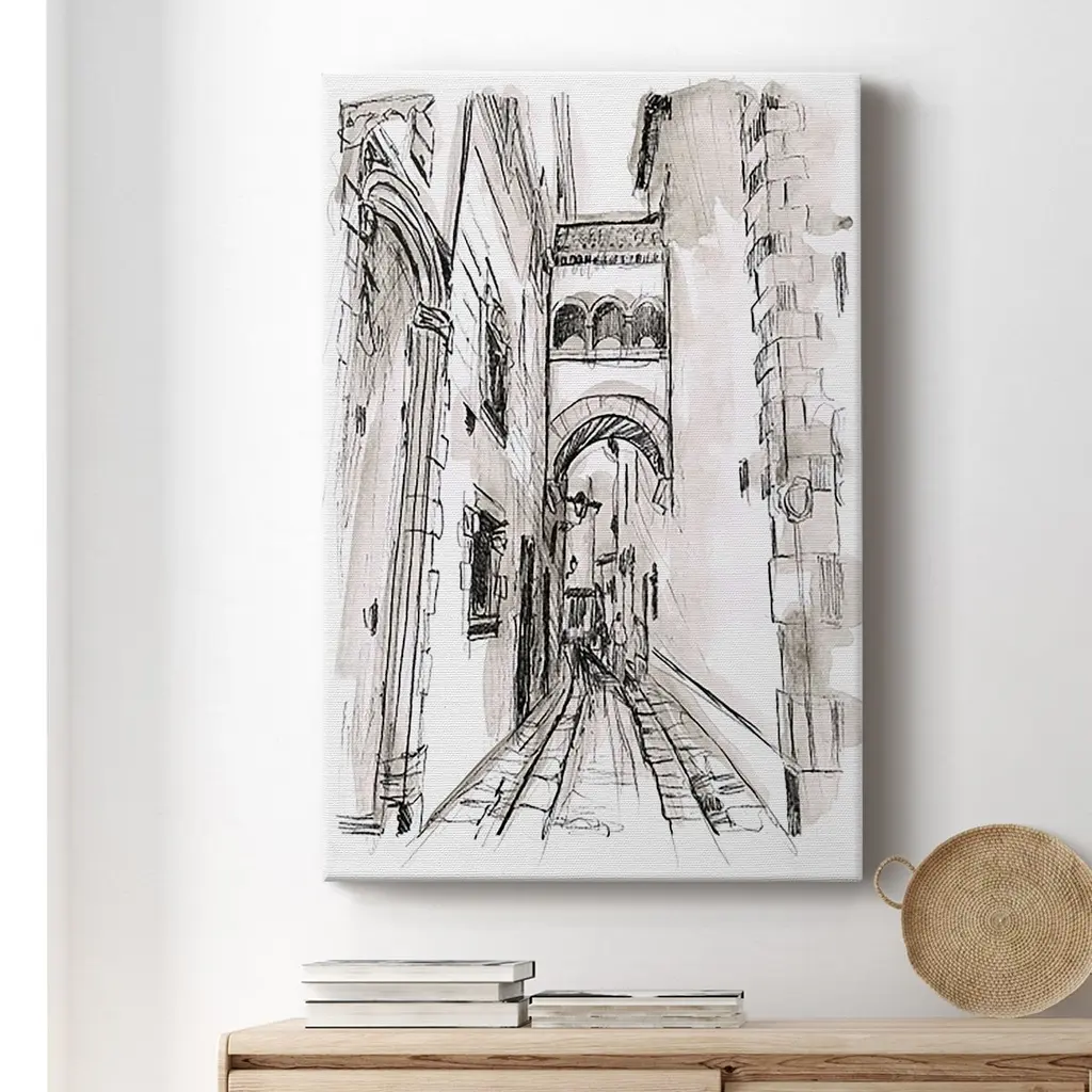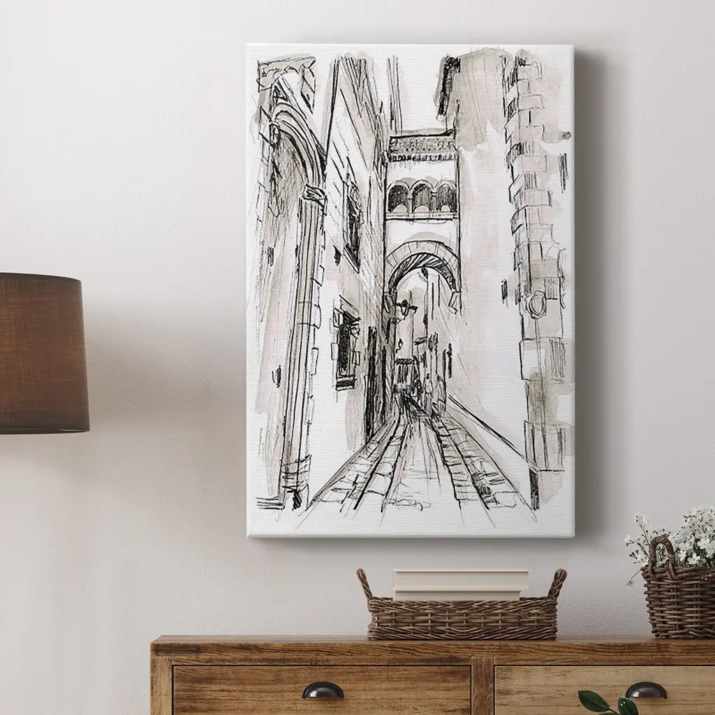 Europe Street Sketches Ii Premium Gallery Wrapped Canvas - Ready To Hang - 24x36