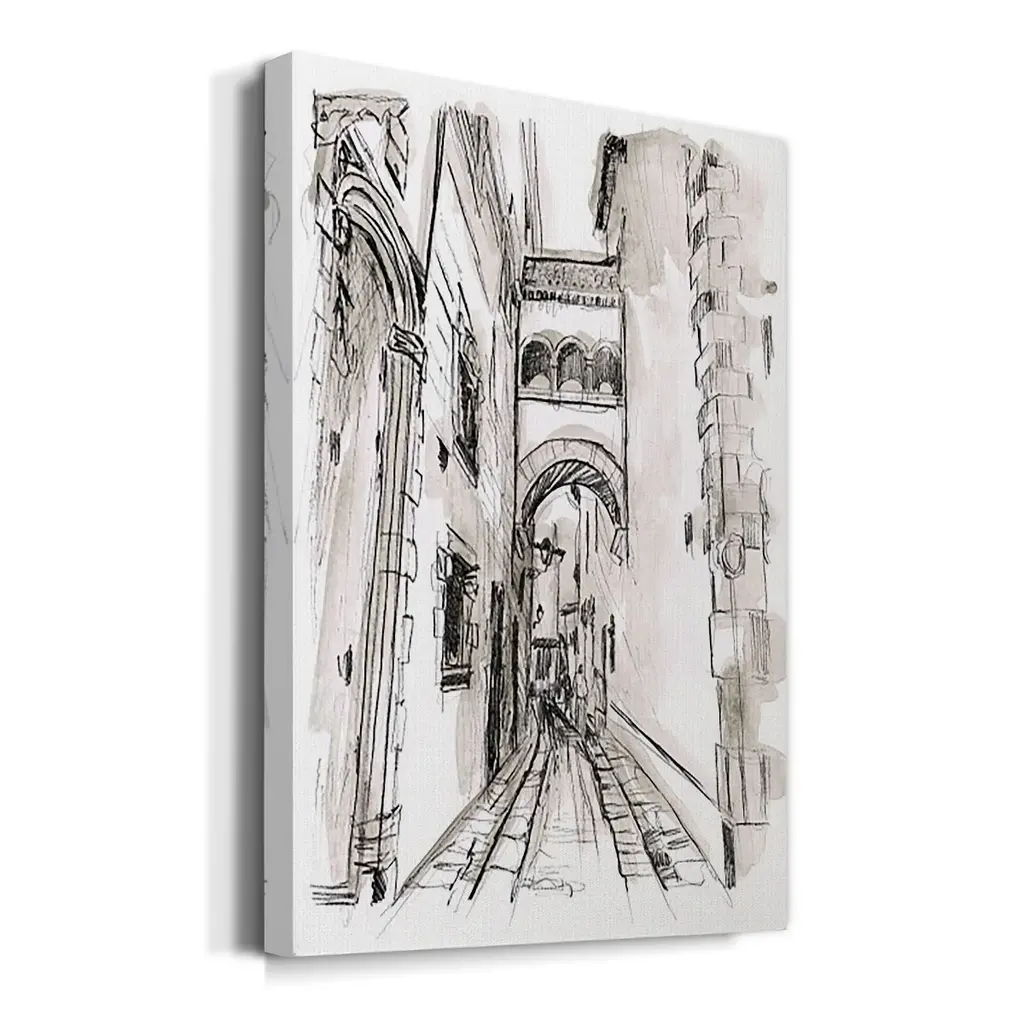 Europe Street Sketches II Premium Gallery Wrapped Canvas - Ready to Hang A premium hand stretched gallery wrapped canvas print created to last. Featuring a beveled a solid wood stretcher bar, each piece comes ready to hand 6 SIZES AVAILABLE 8''X12'' - Overall Size 12''X18'' - Overall Size 18''X27'' - Overall Size 24''x36'' - Overall Size 32''x48'' - Overall Size 40''x60'' - Overall Size Each piece is made to order. Built to Last Each piece comes ready to hang Solid wood stretcher Fade and Water resistant Made domestically
