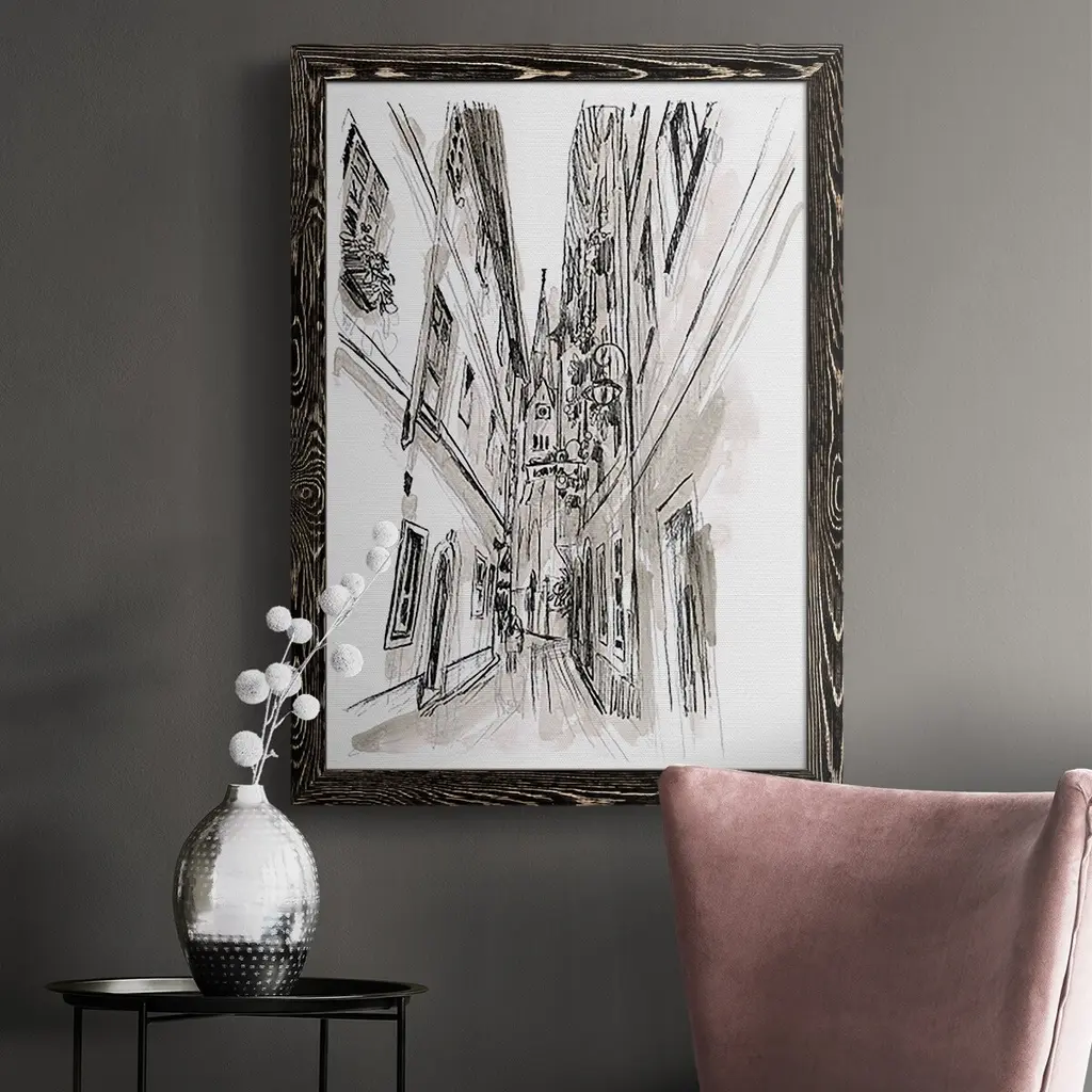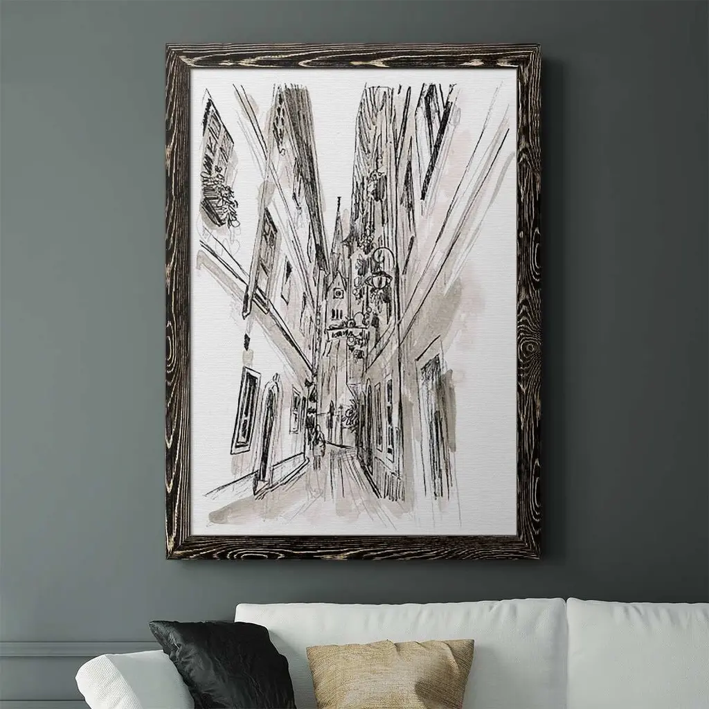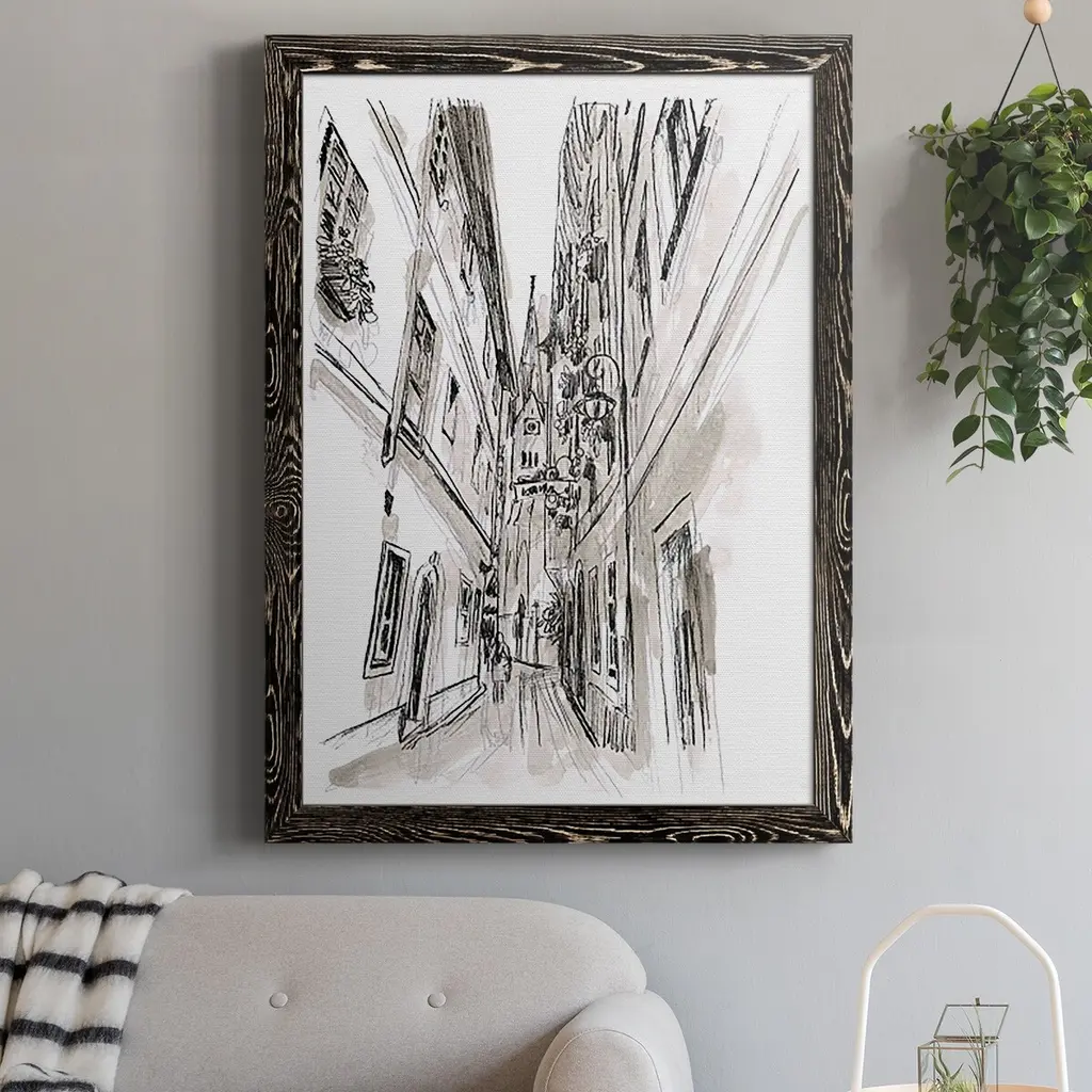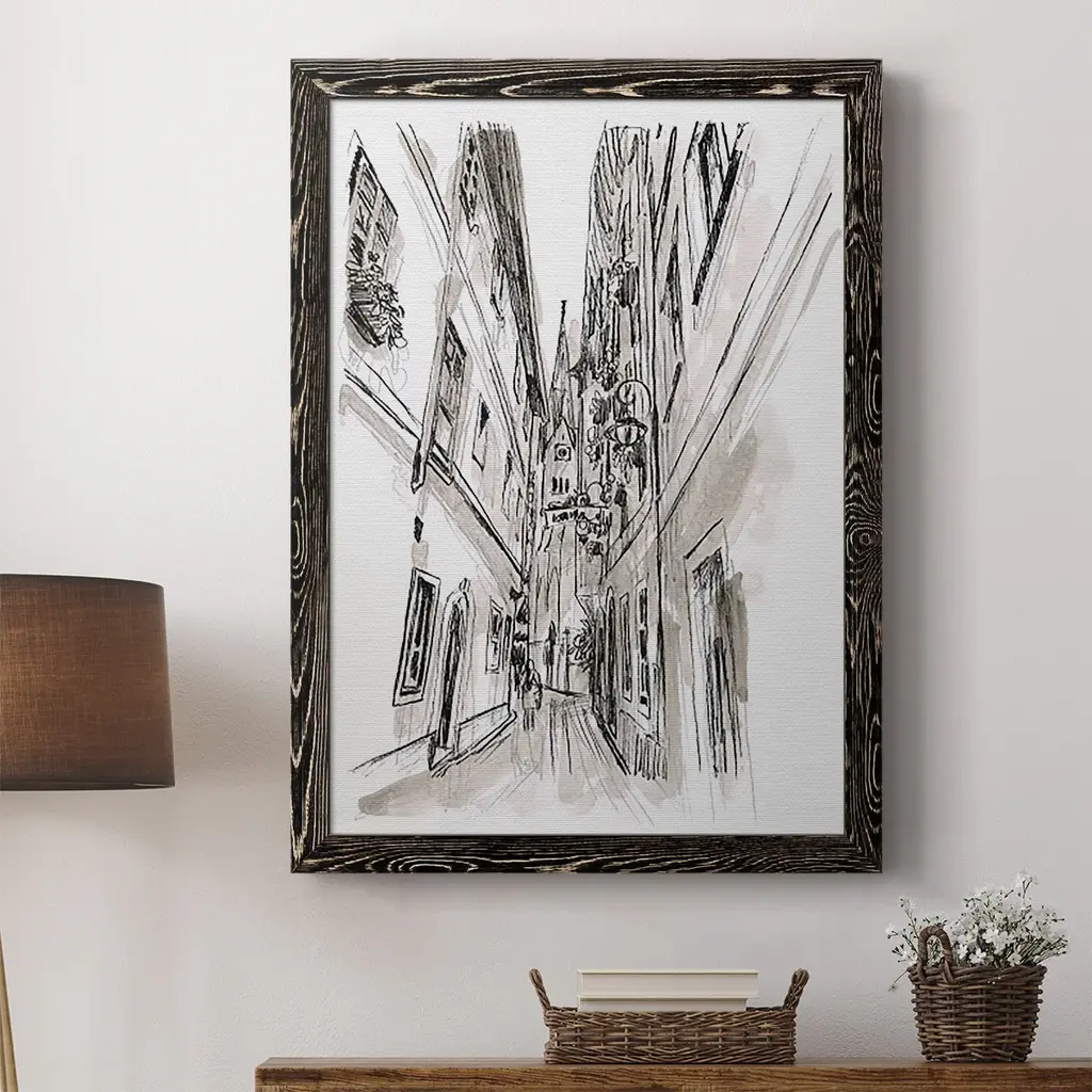 Europe Street Sketches Iii-Premium Framed Canvas - Ready To Hang - 27.5x37.5 - Black