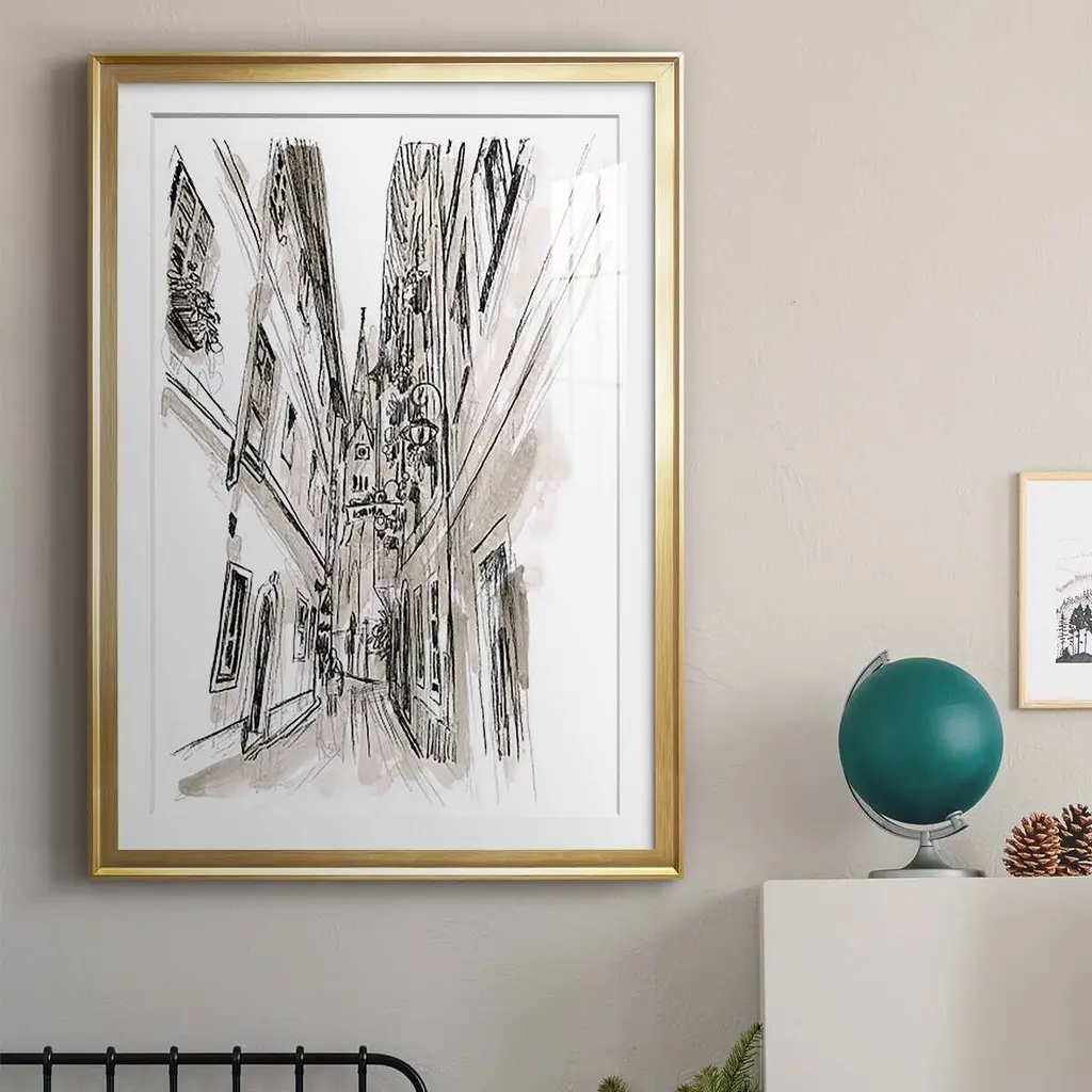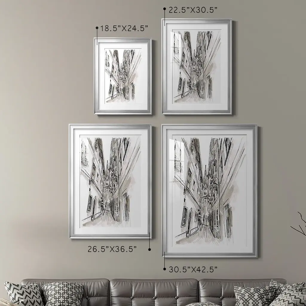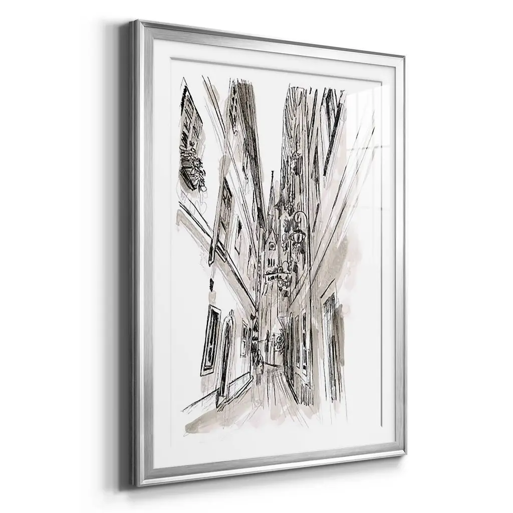 Europe Street Sketches Iii Premium Framed Print - Ready To Hang - 30.5x42.5 - Silver