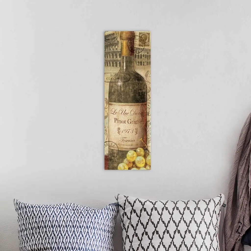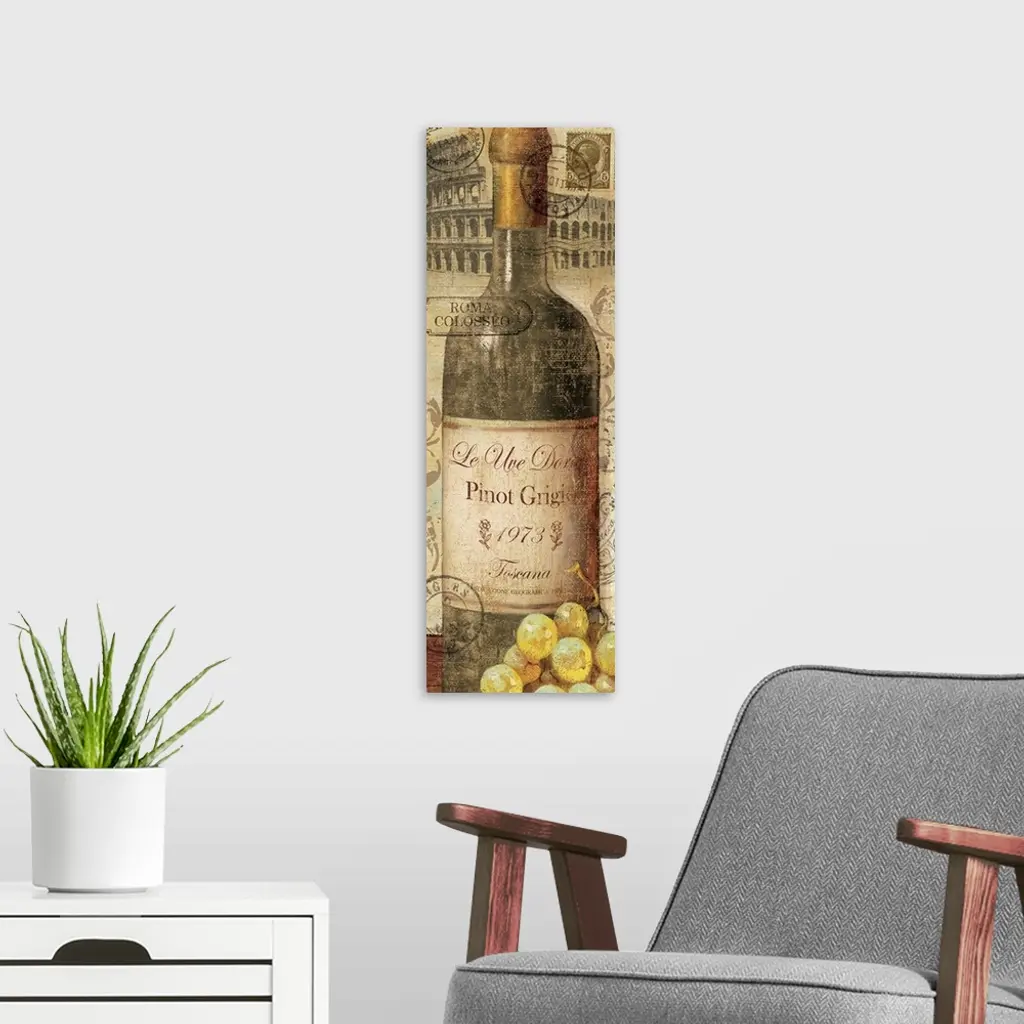 Contemporary painting of a wine bottle with the Coliseum in the background.