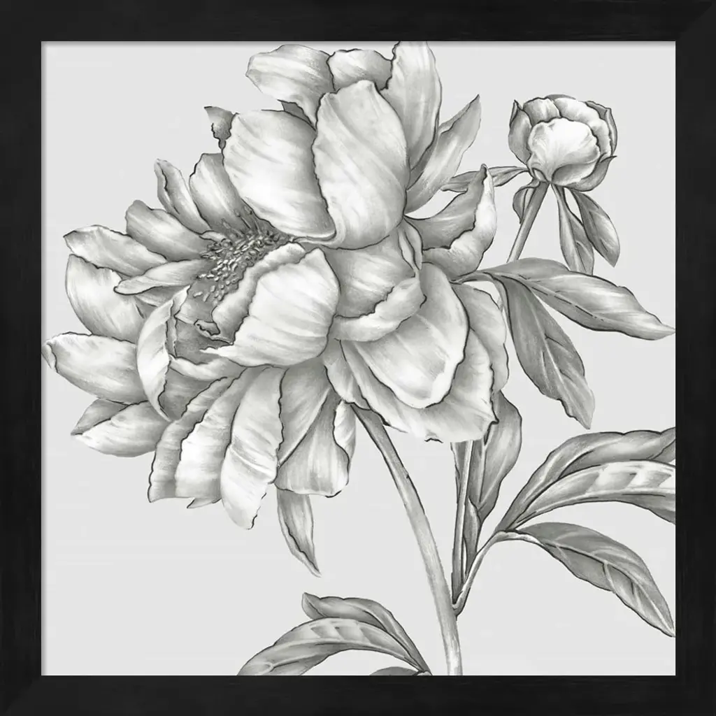 Glorious Peony II by Eva Watts is a high quality piece of framed artwork. The finished size of this piece is 13.25" X 13.25". It has a Black Deep Box frame and is finished with high quality glass. 100% Satisfaction Guaranteed.