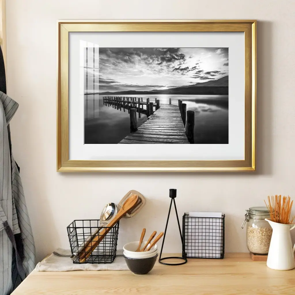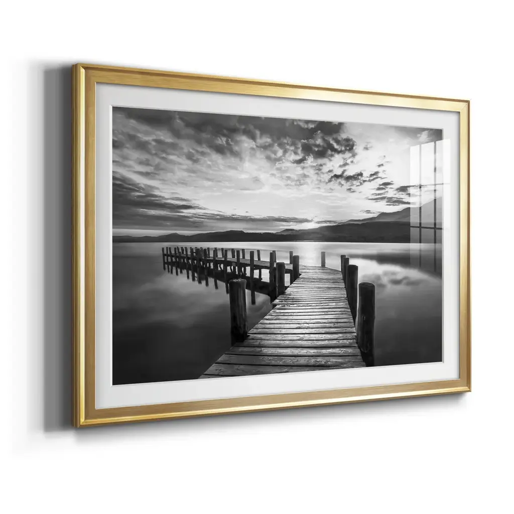 Evening Dock Premium Framed Print - Ready to Hang A Premium Framed Print created to last. Framed in distressed wood and available in an array of sizes and colors Featuring a beveled a solid wood stretcher bar, each piece comes ready to hand 4 SIZES AVAILABLE 30.5''X42.5'' - Overall Size 26.5'X36.5'' - Overall Size 22''x30'' - Overall Size 18''x24'' - Overall Size Each piece is made to order. Each piece comes with hanging hardware. Made in the USA Ready to Hang Giclee Paper Print Acrylic Glass Beveled Matt Board