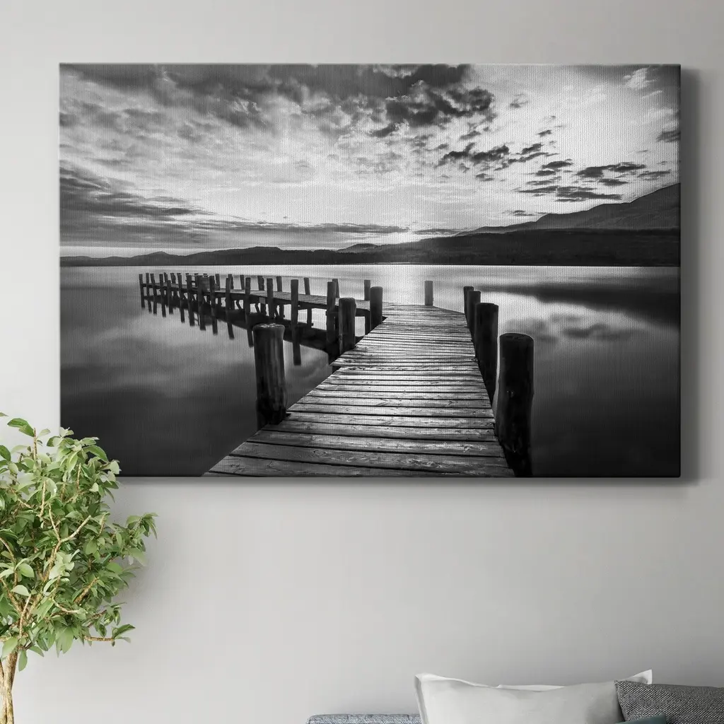 Evening Dock Premium Gallery Wrapped Canvas - Ready to Hang A premium hand stretched gallery wrapped canvas print created to last. Featuring a beveled a solid wood stretcher bar, each piece comes ready to hand 5 SIZES AVAILABLE 8''X12'' - Overall Size 16'X20'' - Overall Size 24''x32'' - Overall Size 30''x40'' - Overall Size 36''x48'' - Overall Size Each piece is made to order. Built to Last Each piece comes ready to hang Solid wood stretcher Fade and Water resistant Made domestically