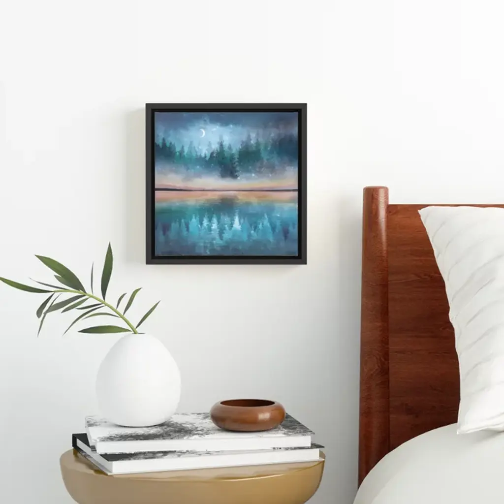 Bright white, fine cotton-poly blend matte canvas.Gallery quality ink is used to ensure saturation for a rich and deep print.Hand-stretched canvas over pine stretcher bars. Framed Canvas Art Prints include hanging hardware. Made in the USA.We're committed to creating beautiful art while respecting our planet:Eco-friendly, acid-free paper.Packaging made from recycled materials.Locally produced in the USA to reduce transportation emissions.SHIPPING: Items are made to order and typically ship within 3-4 business days. Click here for more information about delivery options.RETURNS: Return requests can be made within 30 days of your item(s) delivery. Click here for more information on returns.